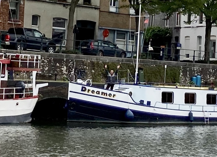 So finally we came into Kortrijk, our current home port. What a wonderful, calming, end-of-the-season feeling, even though we had to squeeze into the 21 metre space waiting for our 20 metre boat! The Captain ceremoniously took down the flags and we were officially tied up for winter.