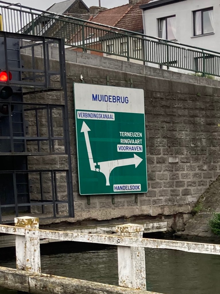 Then we were out on the canal heading south to Gent and going towards the Zelzate bridge that we had never seen open – today it opened!