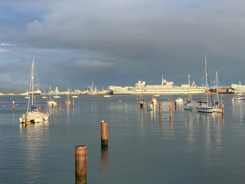 There are always boats to enjoy here at home as well as when we are on Calliope. The two new super carriers, RO8 and RO9, made various entrances and exits of Portsmouth Harbour; we have a good view of their berths from the bridge at the end of the road.