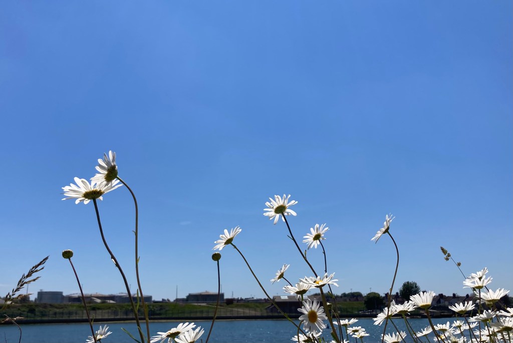 June also brought flowers. These ox-eye daisies grow wild in front of our house, partly camouflaging the RN fuel depot the other side of Forton Lake! I began to realise that I would see my agapanthus bloom this year too.