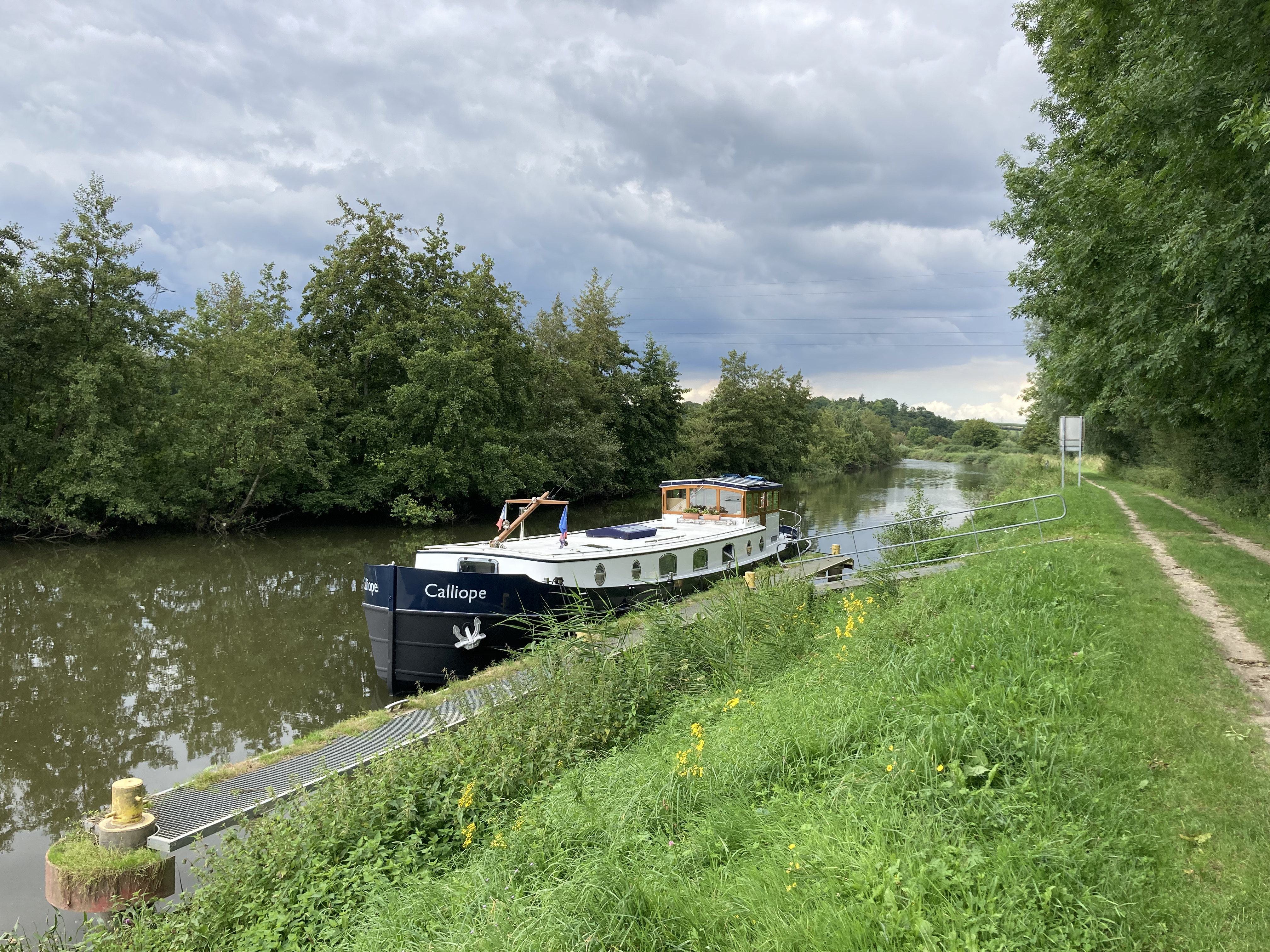 We set off on a short 9 kms cruise to find a country mooring for the next night, and just round the first bend found the pump out and diesel quay – smart and new, but awaiting repair! Maybe next year …..