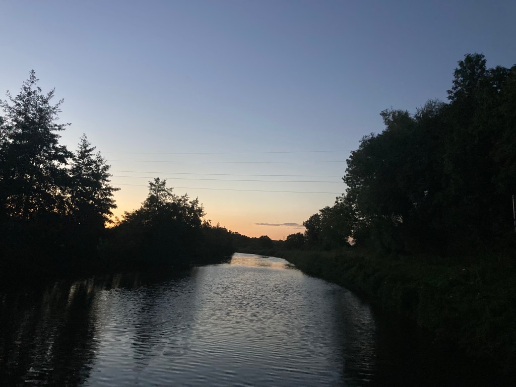 But the evening was perfect – sundown on the back deck and total peace and quiet apart from distant trains. This is what we cruise for!