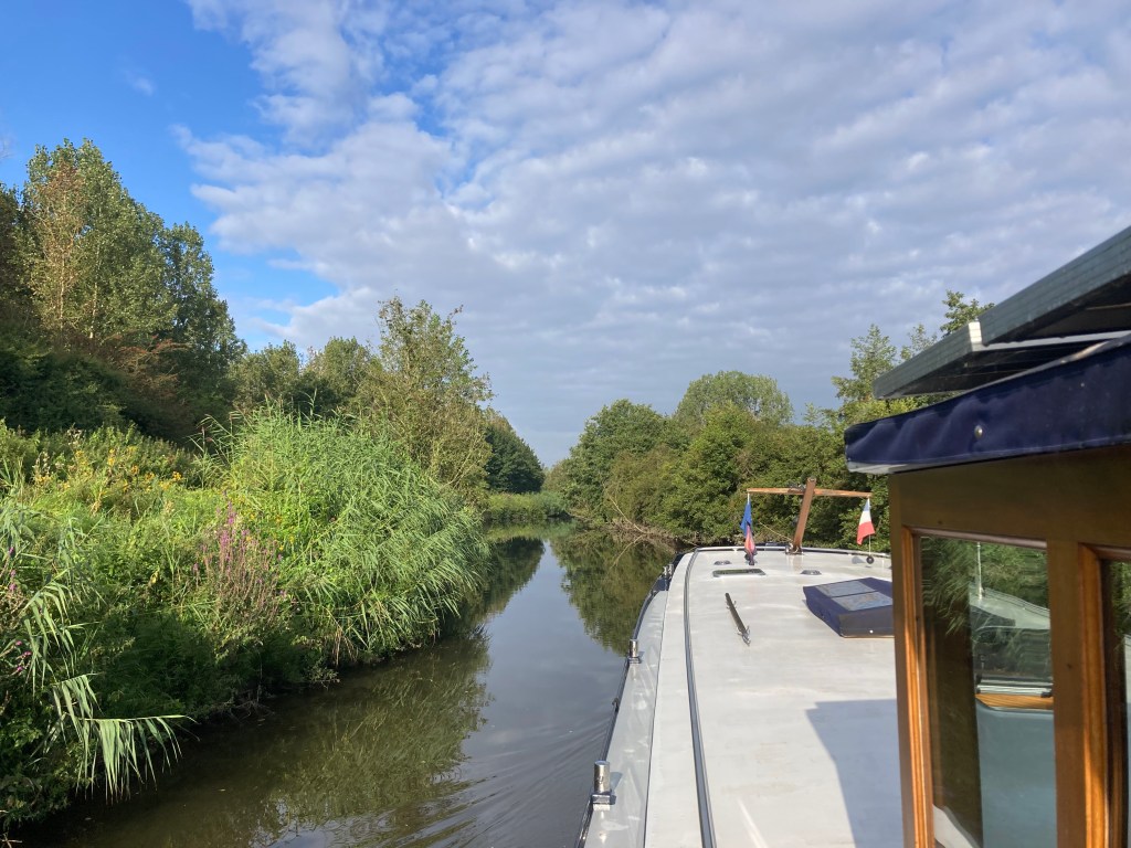 Tomorrow we will move directly onto the Canal de Sambre à l’Oise, and it will probably will seem very similar – except that after the next two locks going upwards we will find ourselves descending.