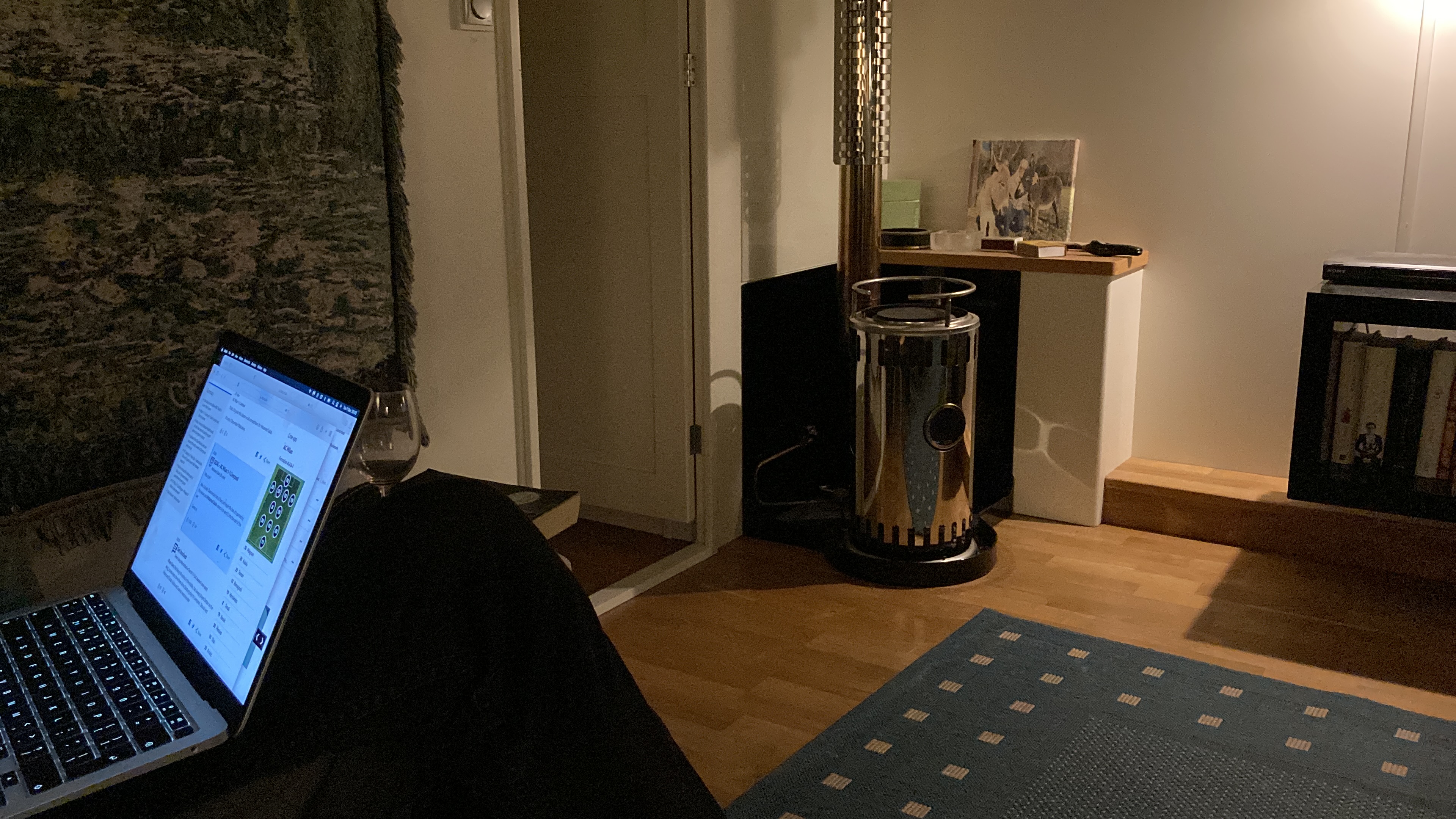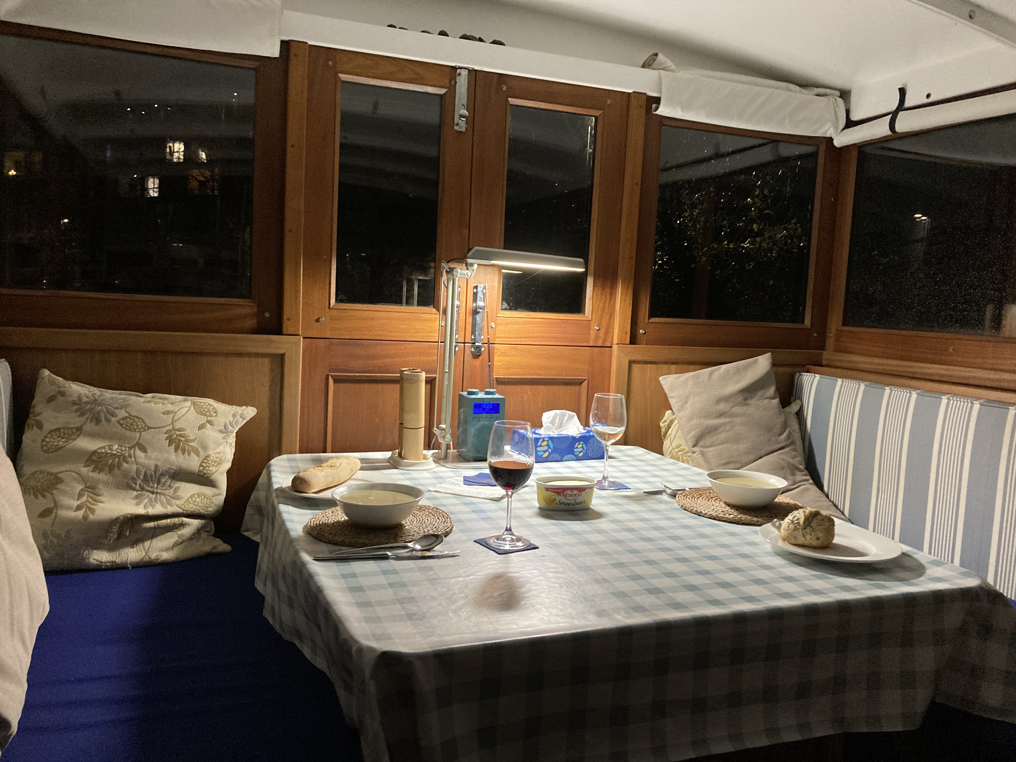 And relax! It is always so lovely to be back aboard and it never takes long to warm Calliope up, unpack and settle down to our first December evening in Kortrijk. The combination of central heating and the Refleks stove lifts the temperature to a gentle cosiness – cheers Calliope!