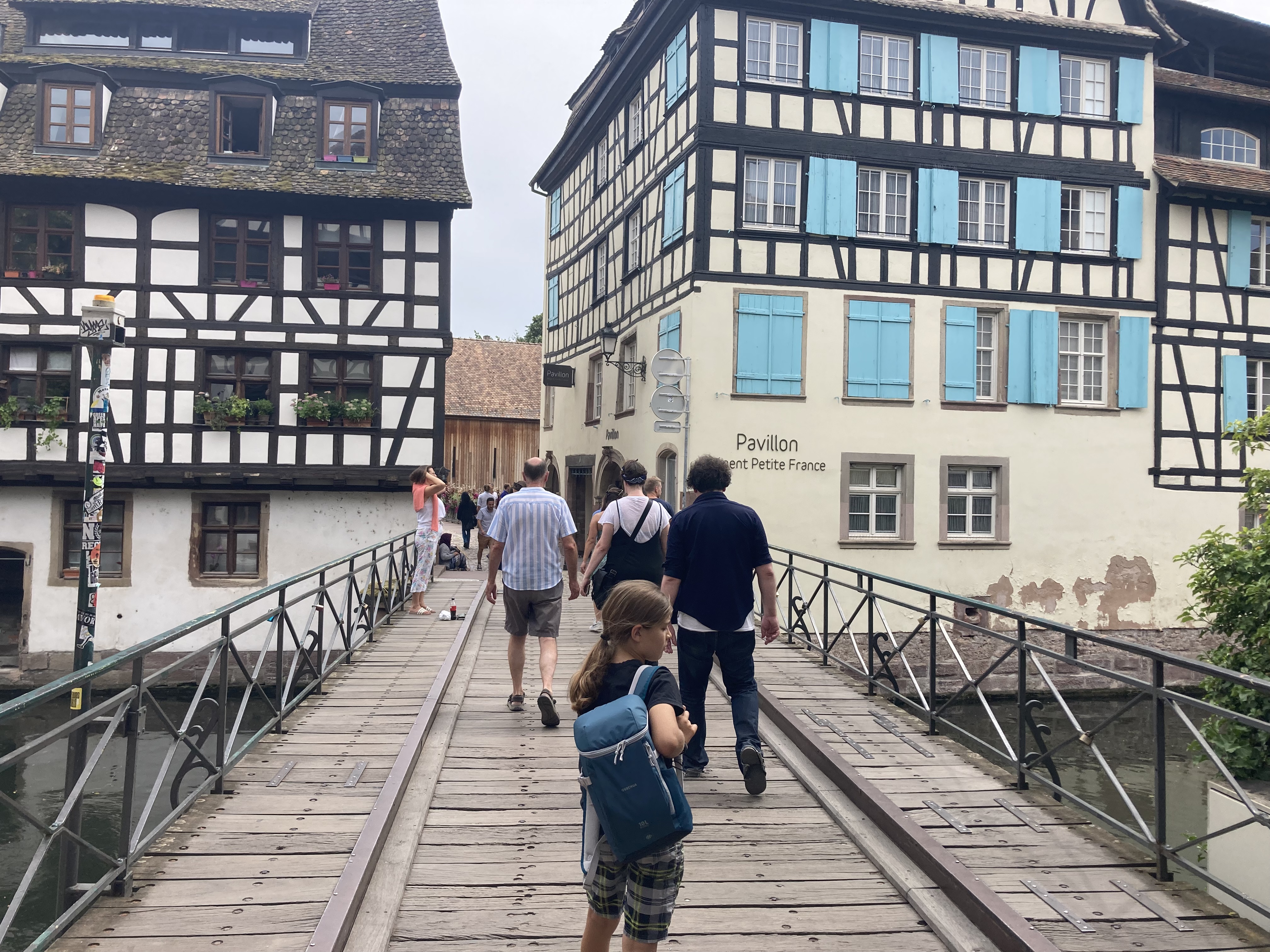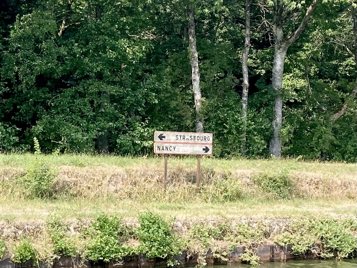 As we came to the end of the Canal de la Sarre we reached a T-junction and the sign above. For now it was an easy choice – we were heading for Strasbourg where our niece and her family would join us for a few days.