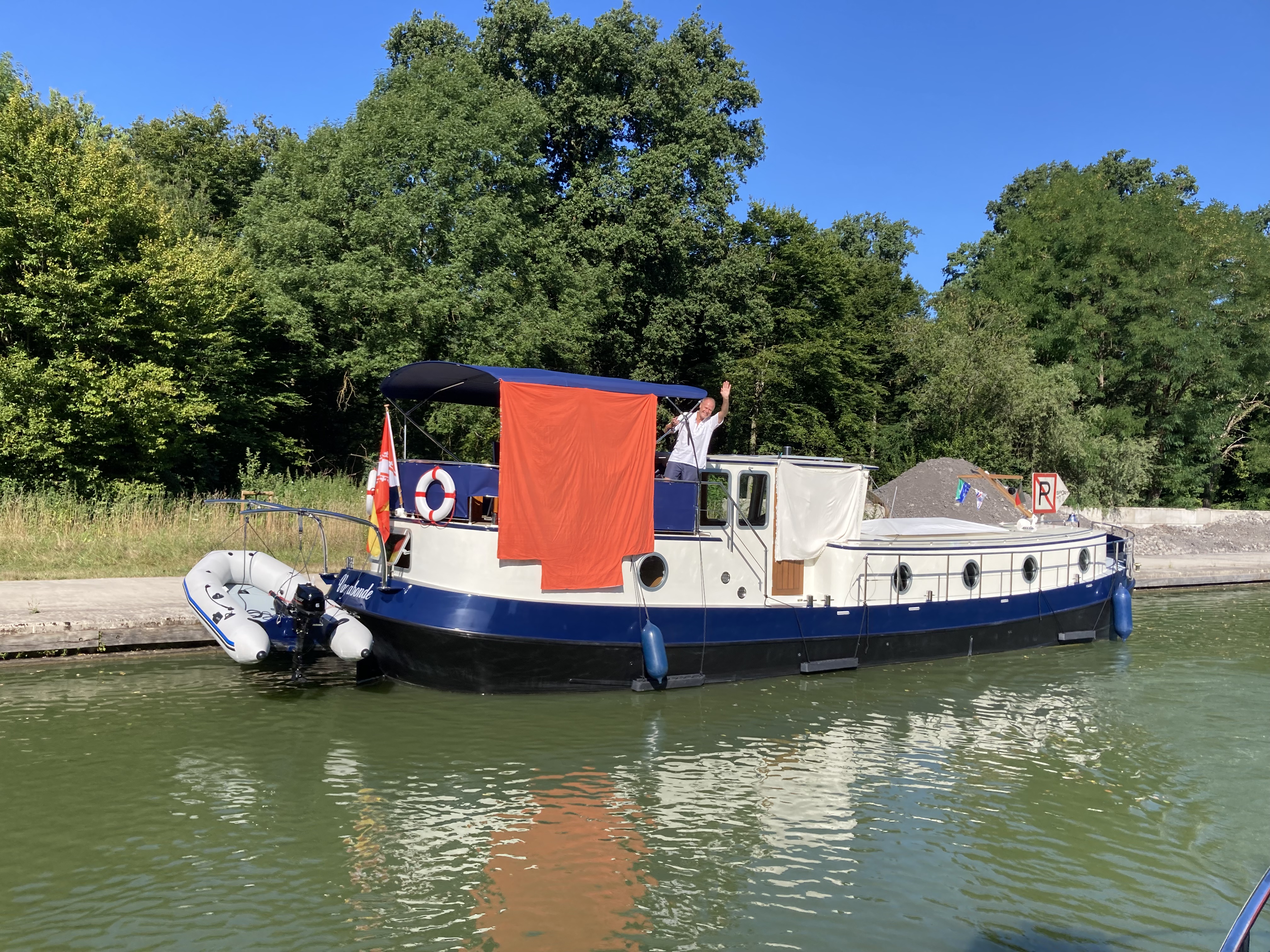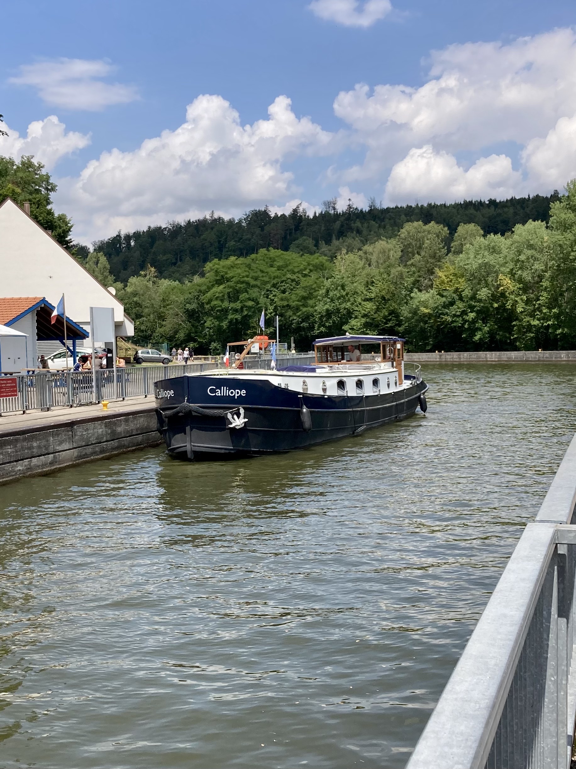 By now we had decided to return to the UK ourselves for most of August. Our planned route via Canal des Vosges could not happen for a while as there was not enough water.
