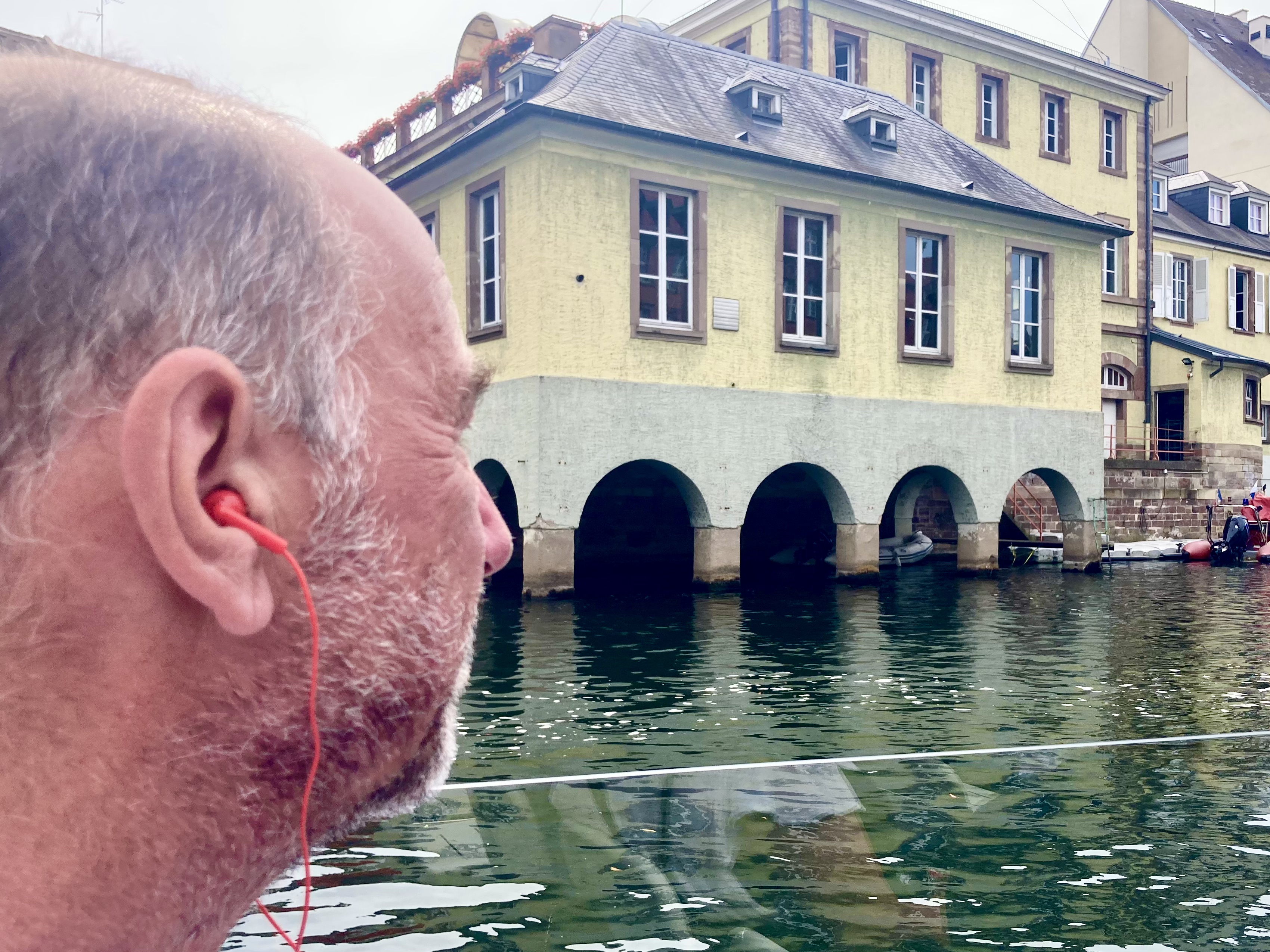 Relaxing that evening in the knowledge we had got to Strasbourg a day before our guests arrived we looked out over the port and marvelled that yet again we had been lucky enough to get an ‘end of pontoon’ mooring with our back deck open to this view.