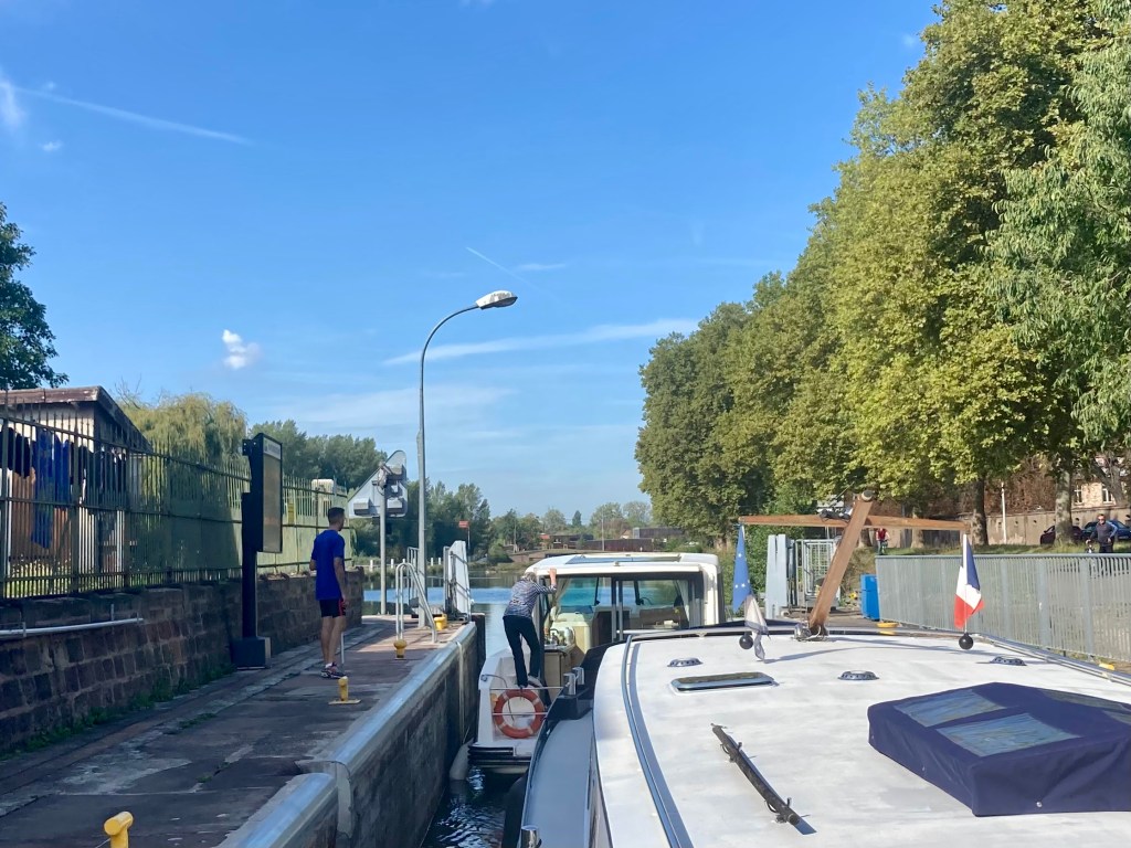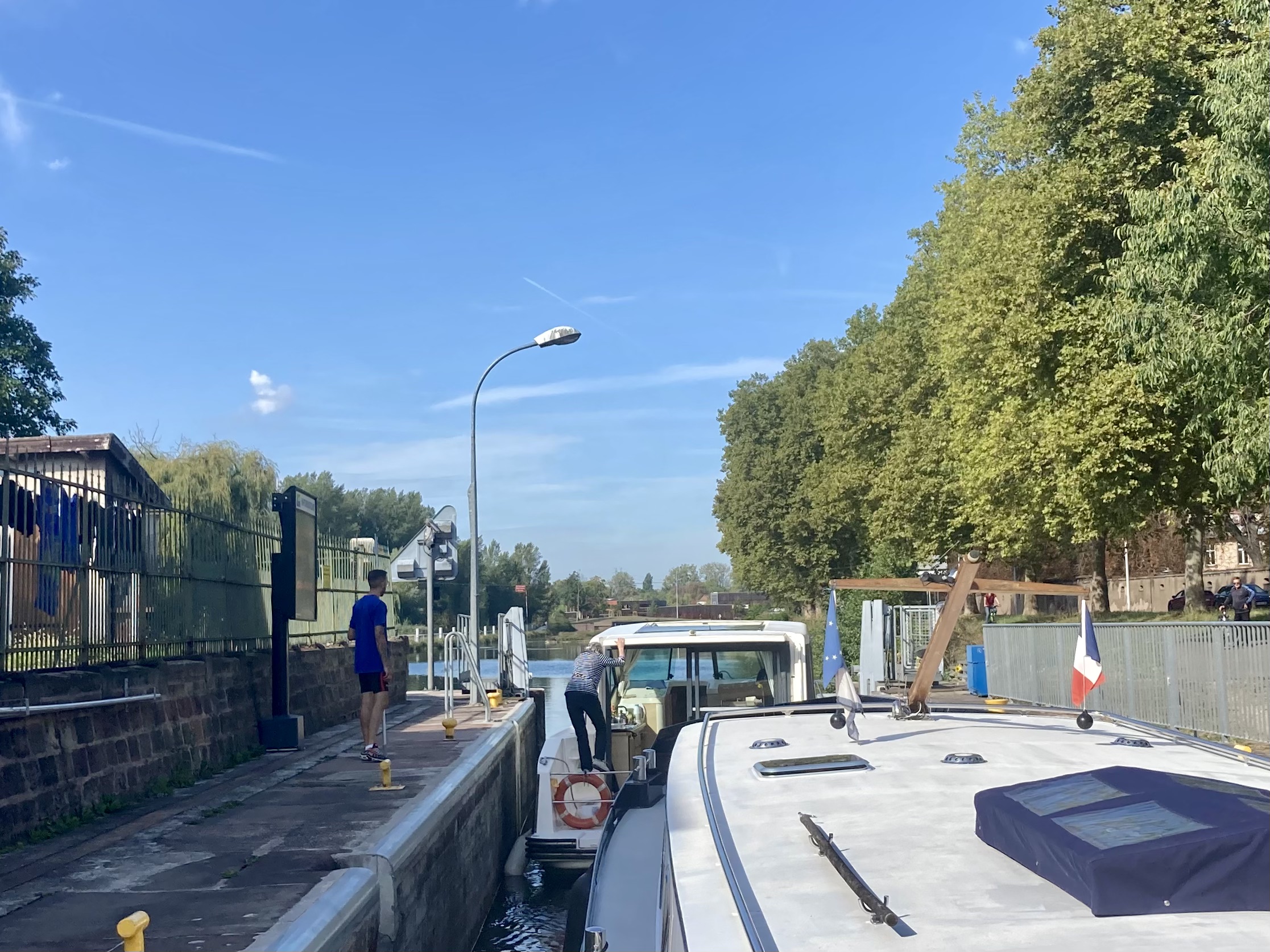 A very helpful éclusier came out to meet us, taking the details of Calliope and making sure that we had a current vignette – the equivalent of road tax, but for a boat in France.