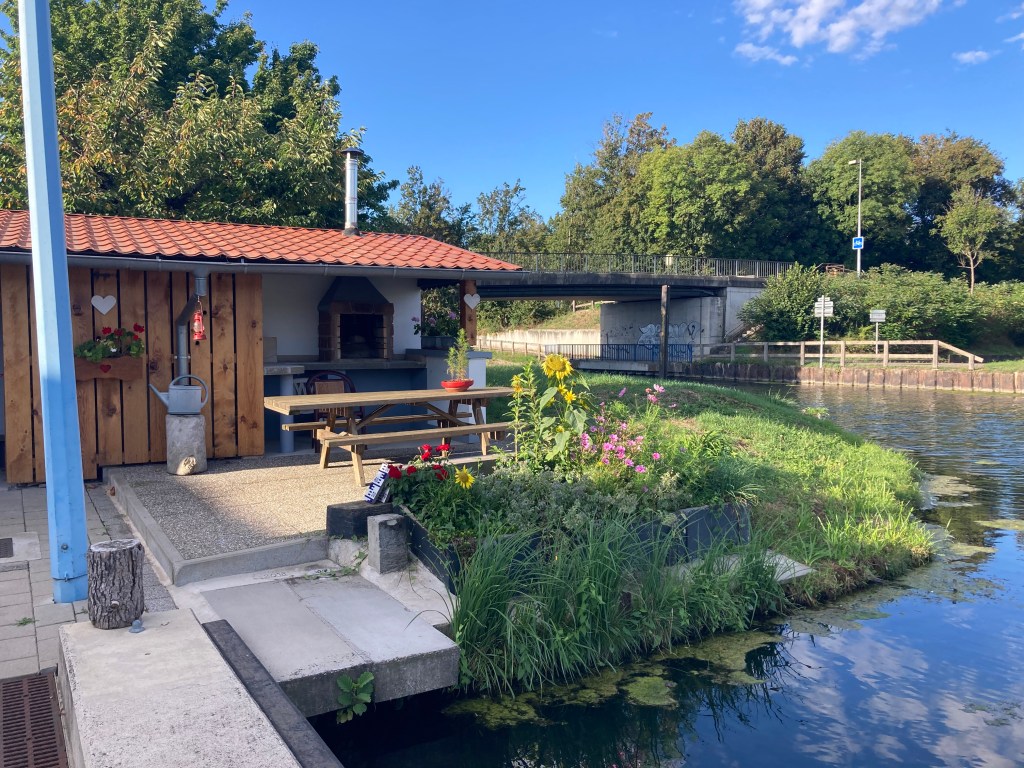 We were in Strasbourg on a beautiful mooring in the Basin de la Citadelle (Port d’Europe) with this lovely view from our back deck.