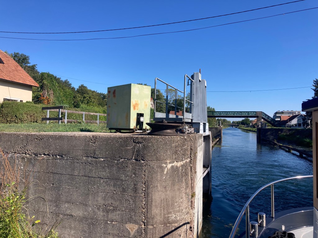 Alain was to join us at the lock where the northern branch of the canal joins the Rhine at Rhineau; on September 6th we set off for a gentle two day trip down to meet him.