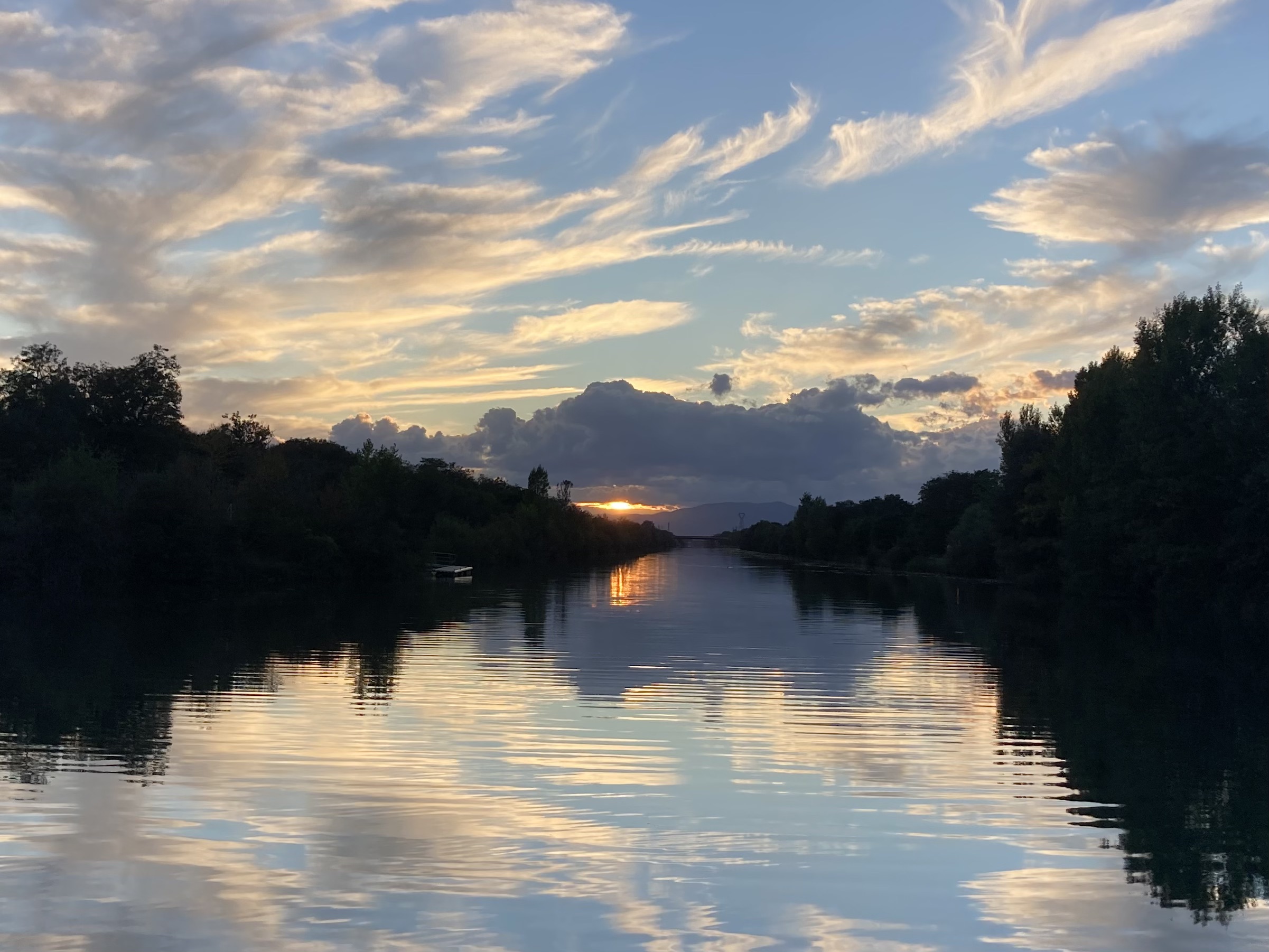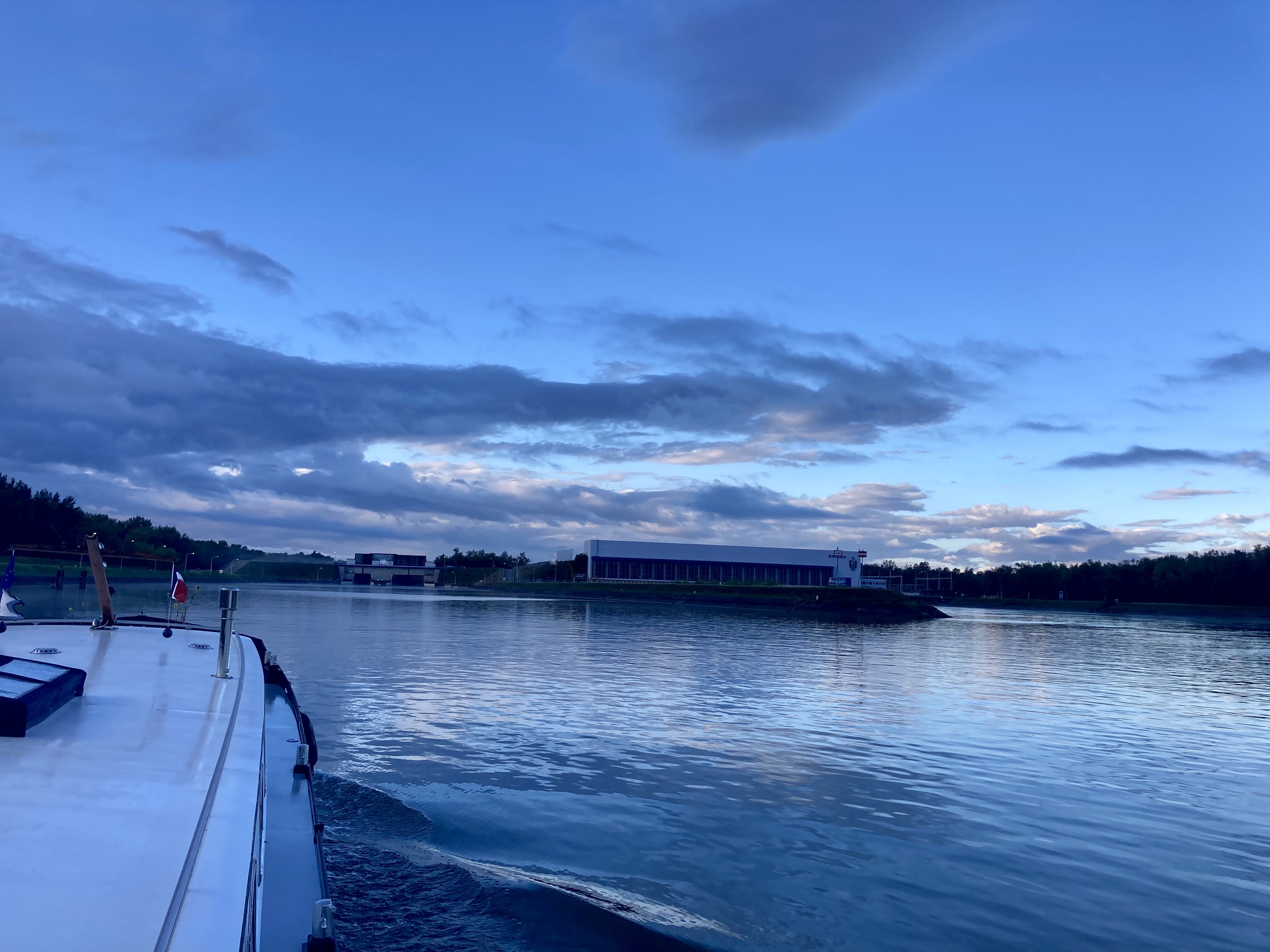 At last – 10 hours later and in fading light – we saw the sign for the southern part of the Rhne au Rhin canal – our exit.