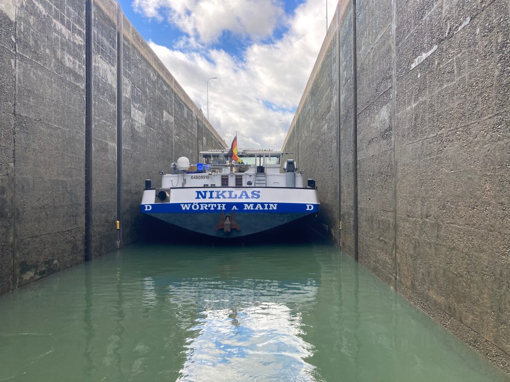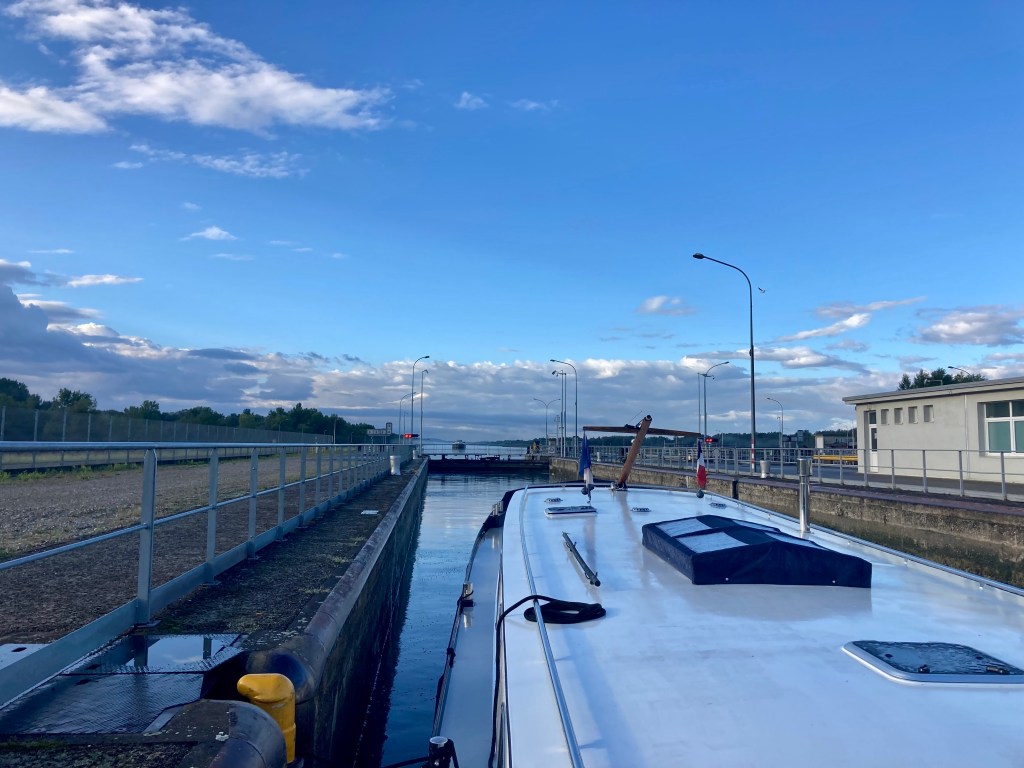 Alain joined us at the lock from the canal down onto the Rhine so we were straight out onto the big river, heading upstream towards our first lock.