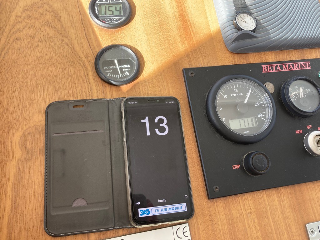 Our here on the Rhine we were up to 1700 rpm which was giving us 13kph according to Alain’s app.