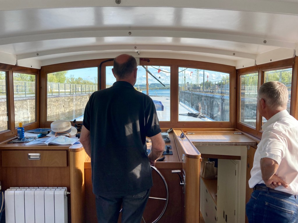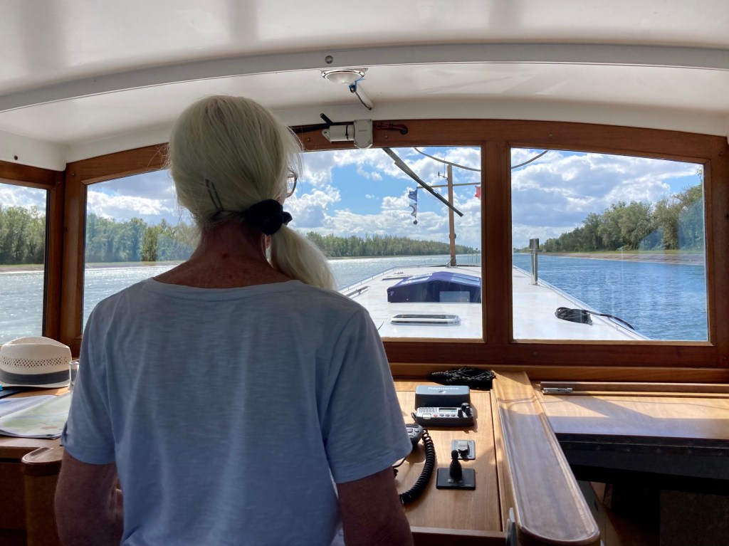 We all took turns at the helm, although Alain did most because he was so enjoying being back on a boat rather than in an office. Stu and Alain were in charge for the locks, and I was trusted not to hit anything in between on such a big wide open waterway!