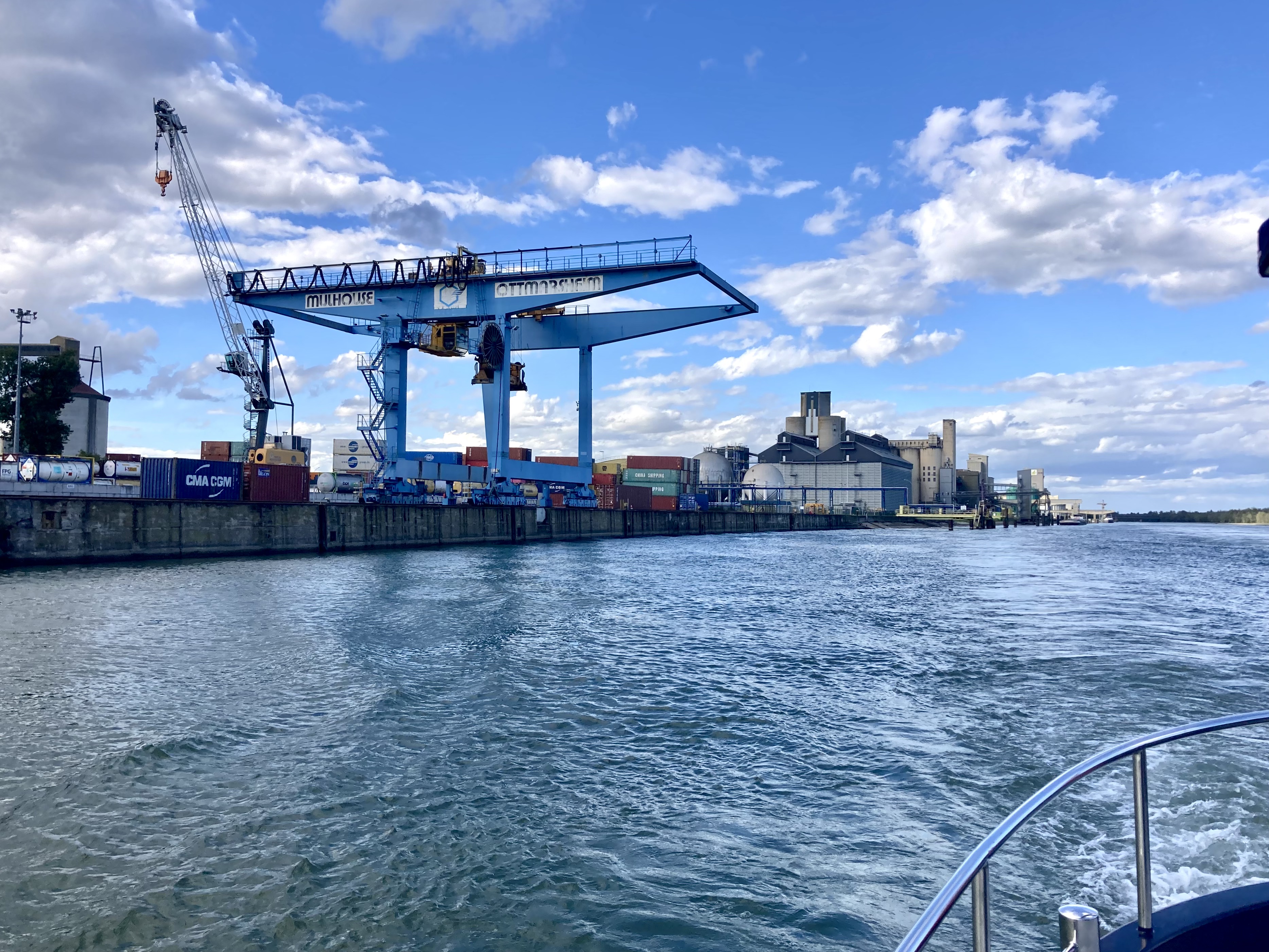 We had called ahead to book a mooring at the Mulhouse port. Soon we were able to moor up to the hammerhead reserved for us – in plenty of time for me to find a local boulangerie – good fresh baguette towards our lunch.