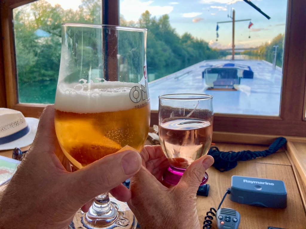 Cheers Captain – our pilot has left, we are off the Rhine, and back to our own devices. We have done it! It may not seem much to most of you, but we had been apprehensive about being on the Rhine and needing a pilot. In fact it was simple, enjoyable and educational, though a long day for people who usually aim for a maximum of 4 hours cruising!