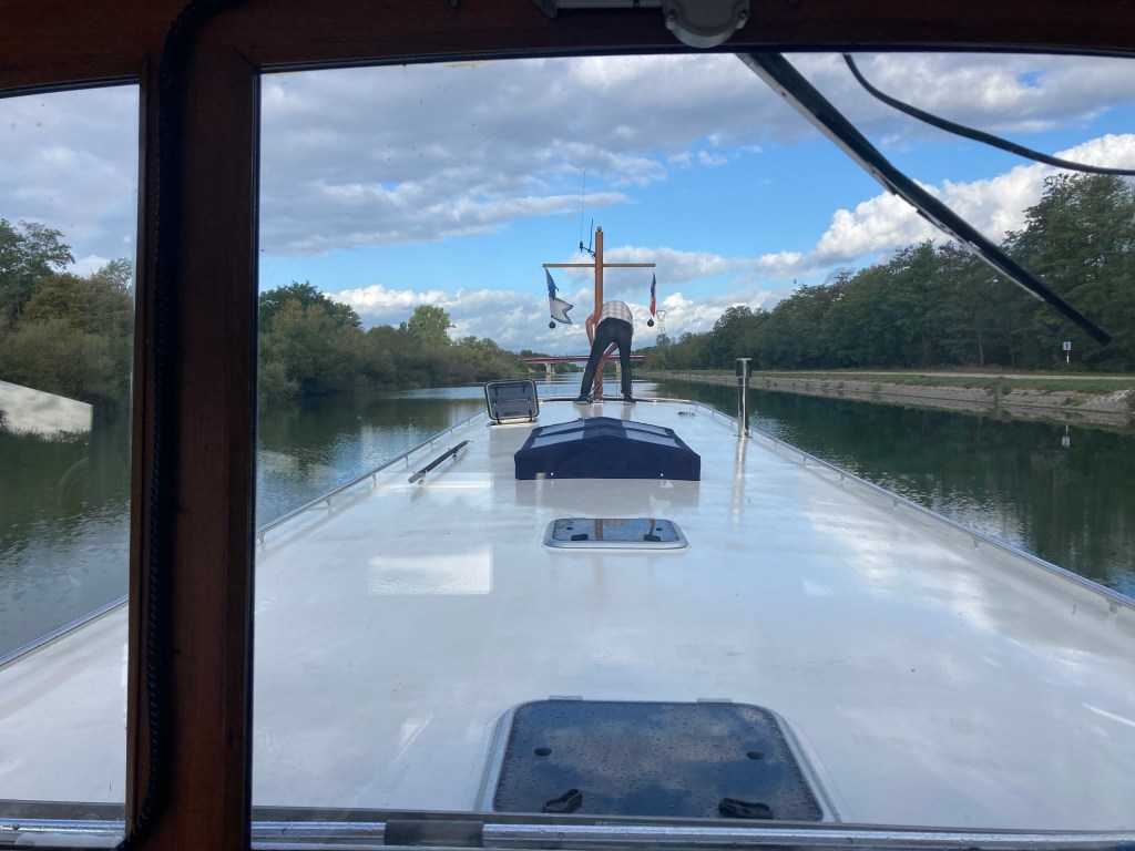 So the change of plan was to use the Rhône au Rhin canal, now separated into two branches and necessitating a 72km strip of the Rhine itself. To go on the Rhine we have to have a pilot aboard – someone with a Rhine license. All boats over 15m must have a qualified person aboard on this big and often commercially busy river – although this regulation is due to change from 15m to 20m – which will let us off the hook.