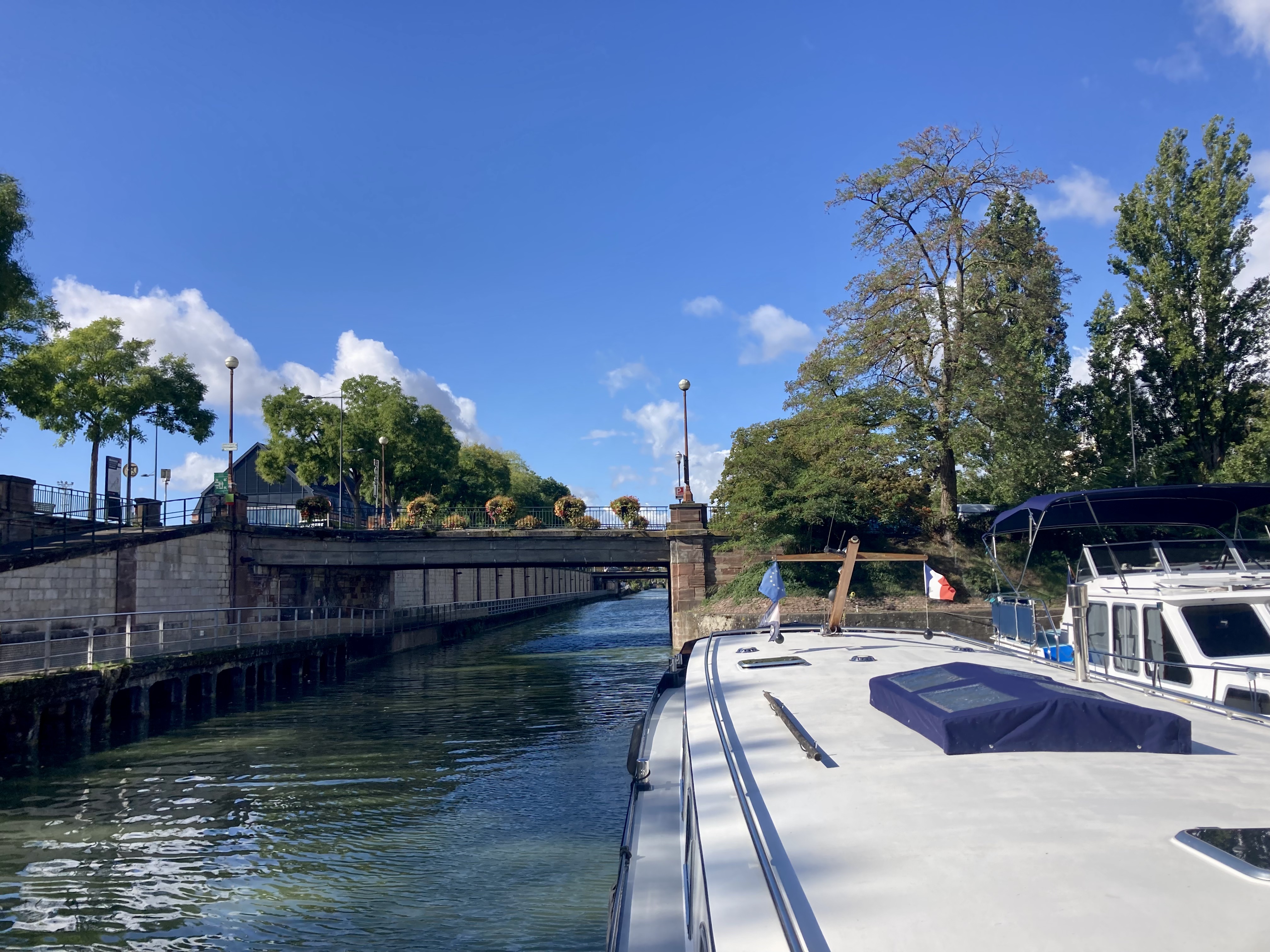 It isn’t too difficult to find a pilot with the licence – and our search was made even easier by discovering two of them working at the Port d’Europe; one of them was free to come with us – Alain. We booked him in and set about enjoying our last week in Strasbourg!