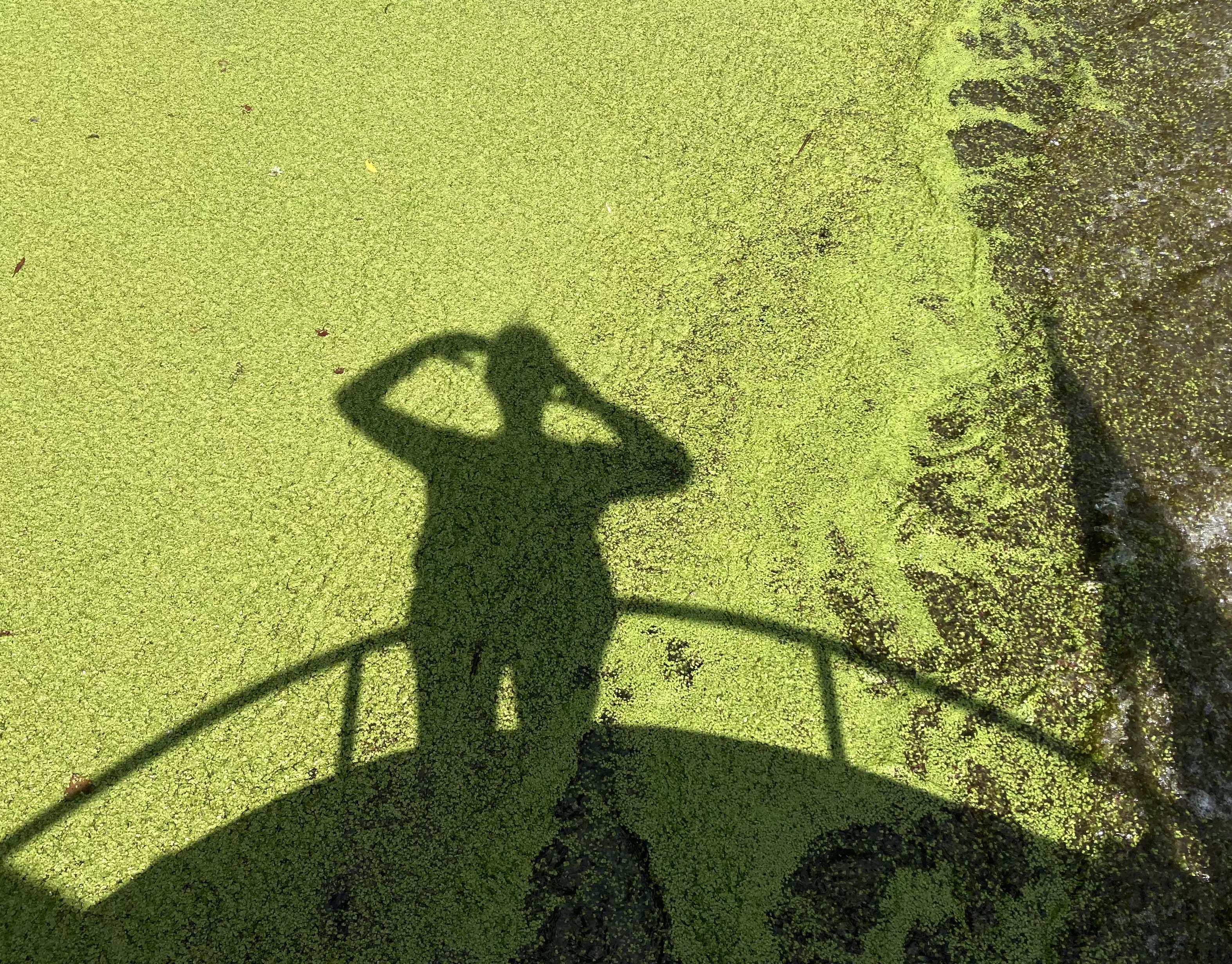 The duckweed also gave me a chance to muck about with shadows (yes, the sun made an appearance), and to enjoy the green lace patterns we left in our wake.