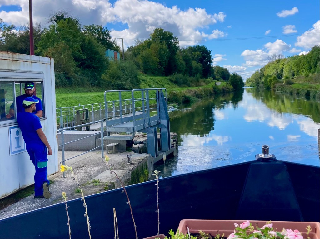 Just over a kilometre after Dampierre we had a short stop. Today’s cheerful Eclusiers did want to take his one and a half hour lunch break -something that didn’t happen with our accompanying lock keepers over the past few days.