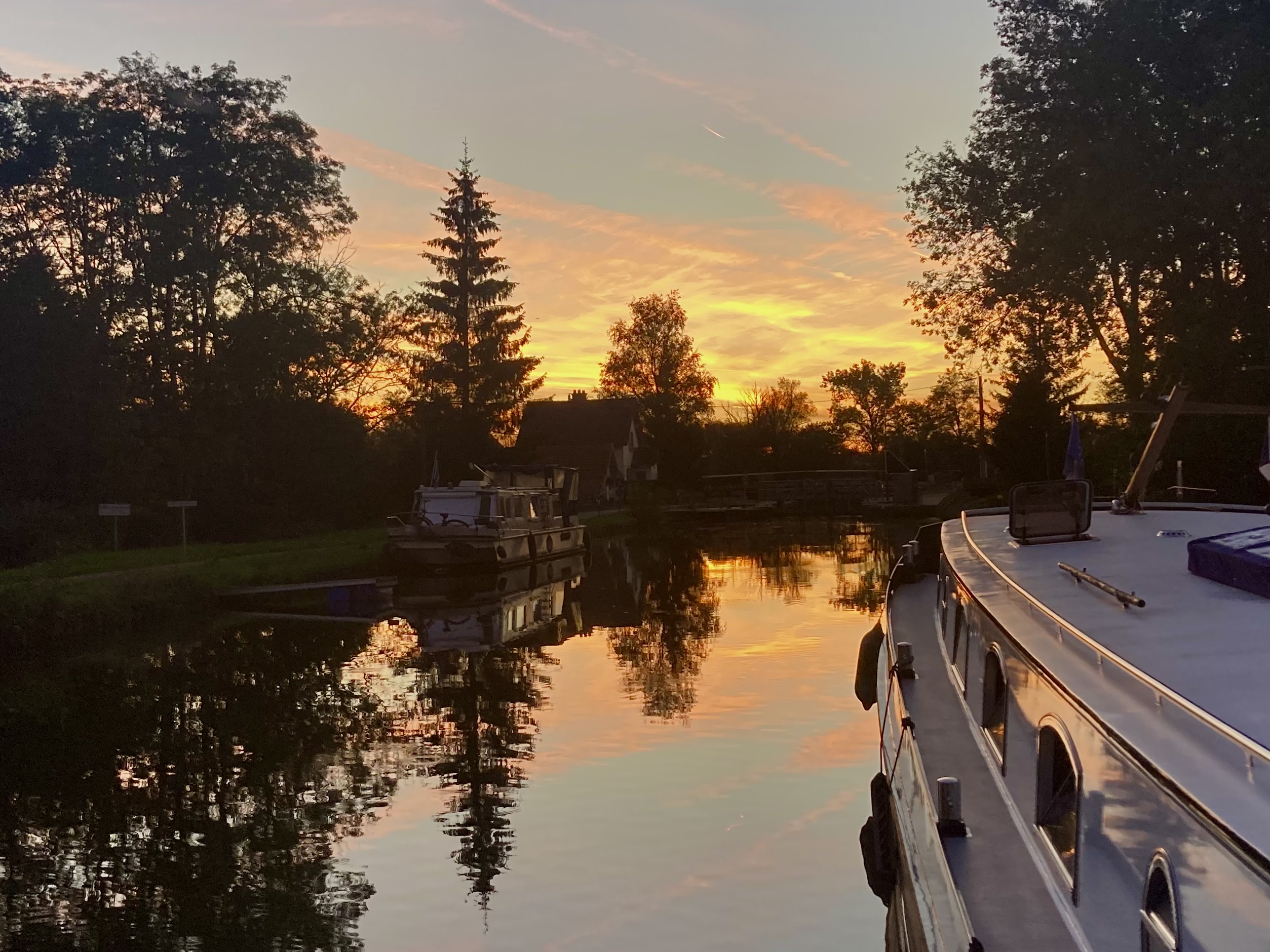 Later, after our supper, we were joined by another boat on the pontoon. It was a bit of a surprise as they arrived just after 7pm, which is when the ,locks close for the night and you imagine no more boats will be moving around!