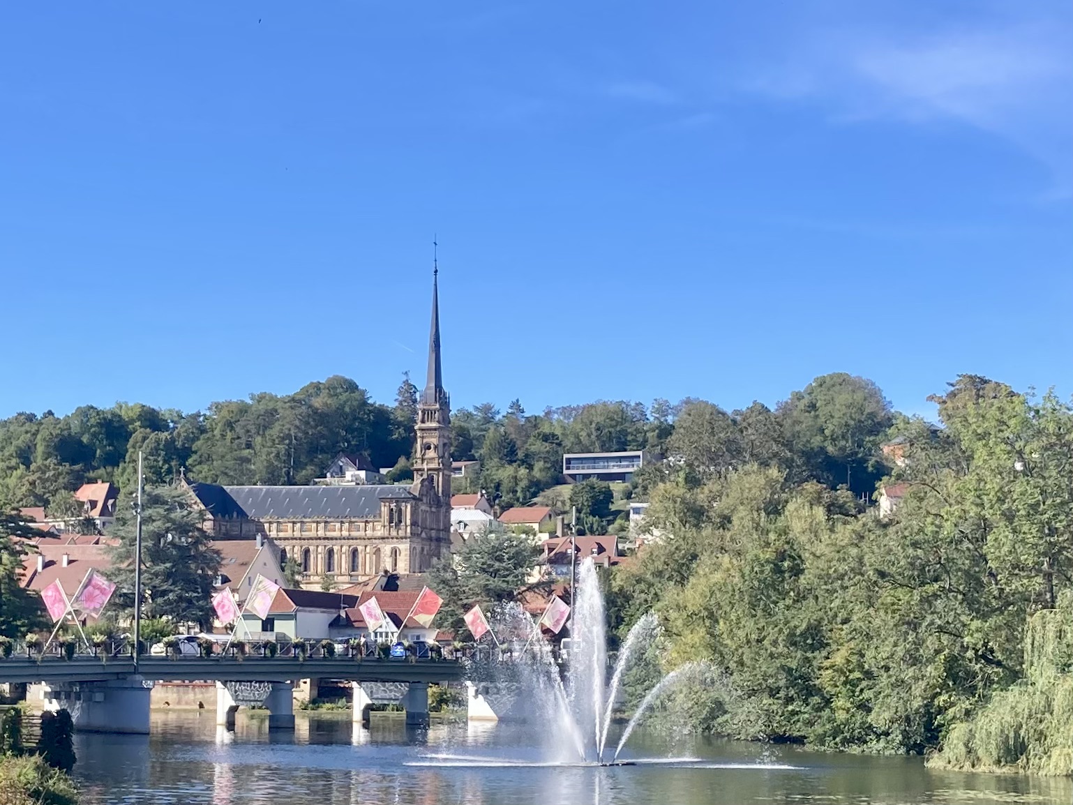 It wasn’t long before a helpful VNF man arrived and had us in the lock, looking out over the drop to the river below. Once we had descended we only had 5kms, I lock, and a few bridges to go under before we reached Montbéliard and our stop for the night.
