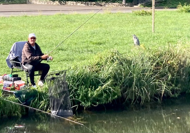 Along the way we saw a hopeful heron, patiently waiting for the fisherman to decide to throw away some small fry – just right for breakfast!