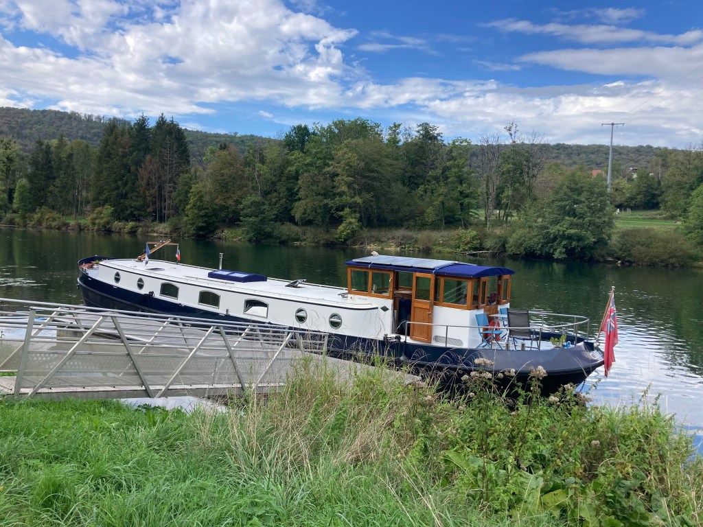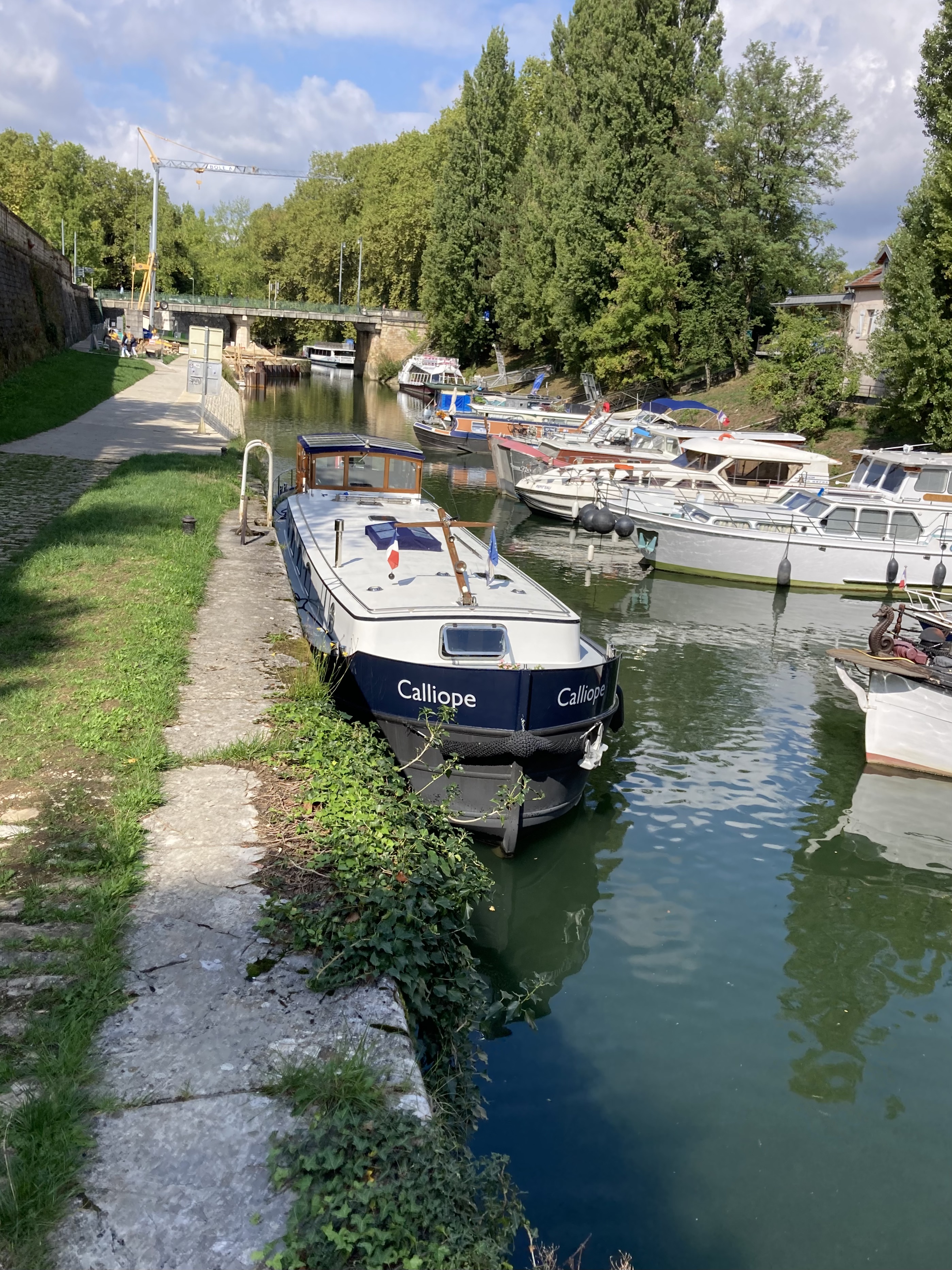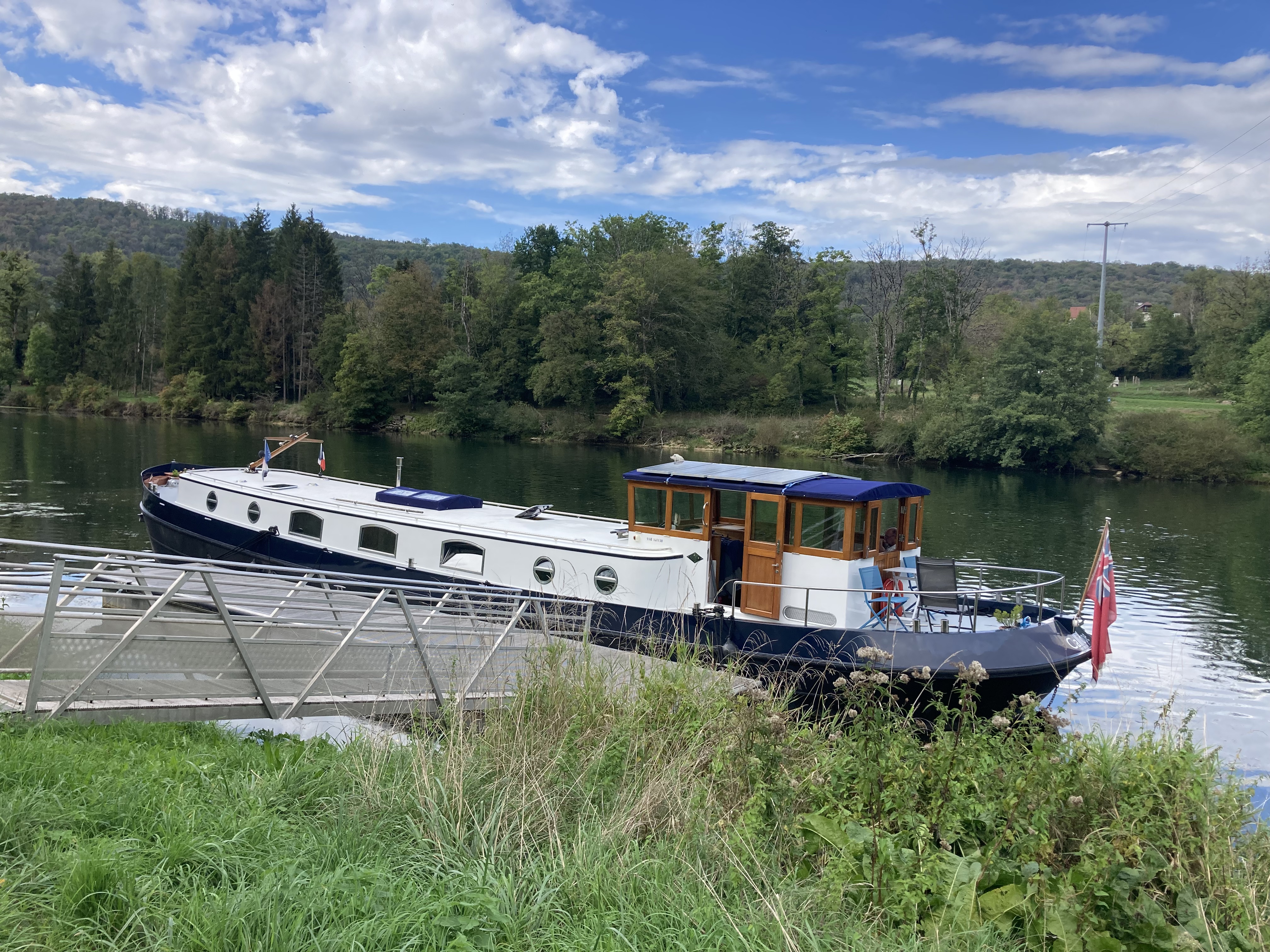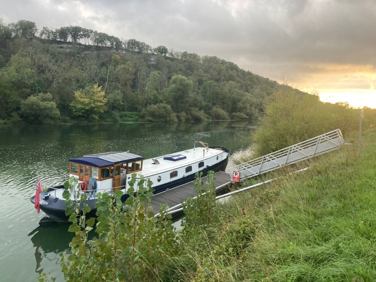 And here it is – our alternative. We moored above Dole, just above the Charles Quint lock. On this occasion there was no sign about it being a waiting pontoon, so we felt good tying up here.