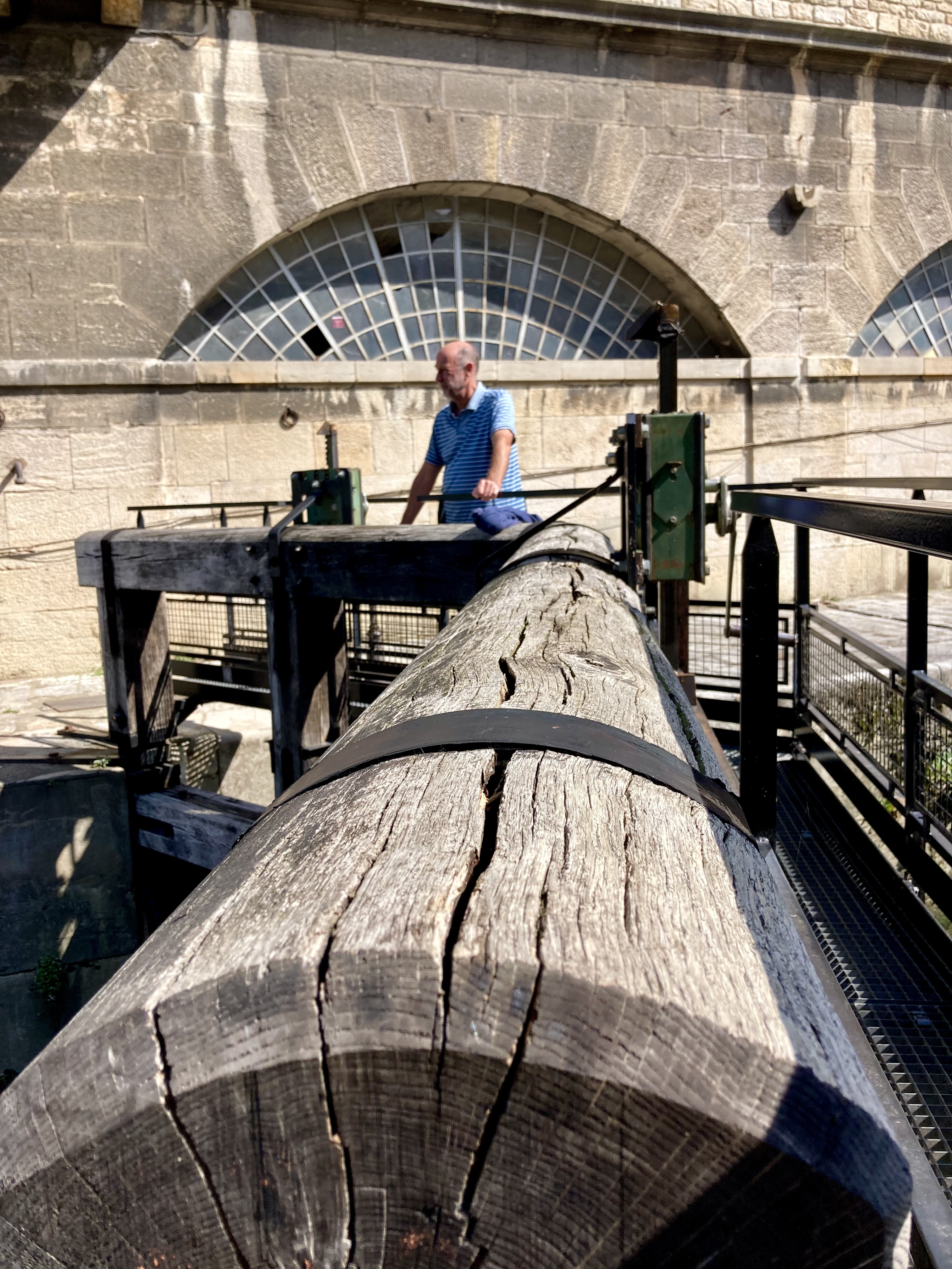 Ah! Now he understood why we were on the waiting pontoon – and two other boats were wallowing about on the river behind us, both also waiting for the lock. His job was weed clearance, but he would help us. He went to the lock controls and soon the gates fully opened – to reveal a large tree trunk that presumably had been trapping the doors.