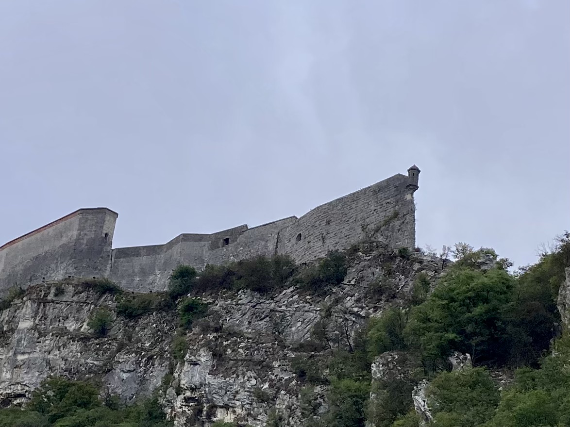 Two hours and only two locks on we are on the outskirts of Besançon, looking up at the massive Vauban citadel on the hill above the city.