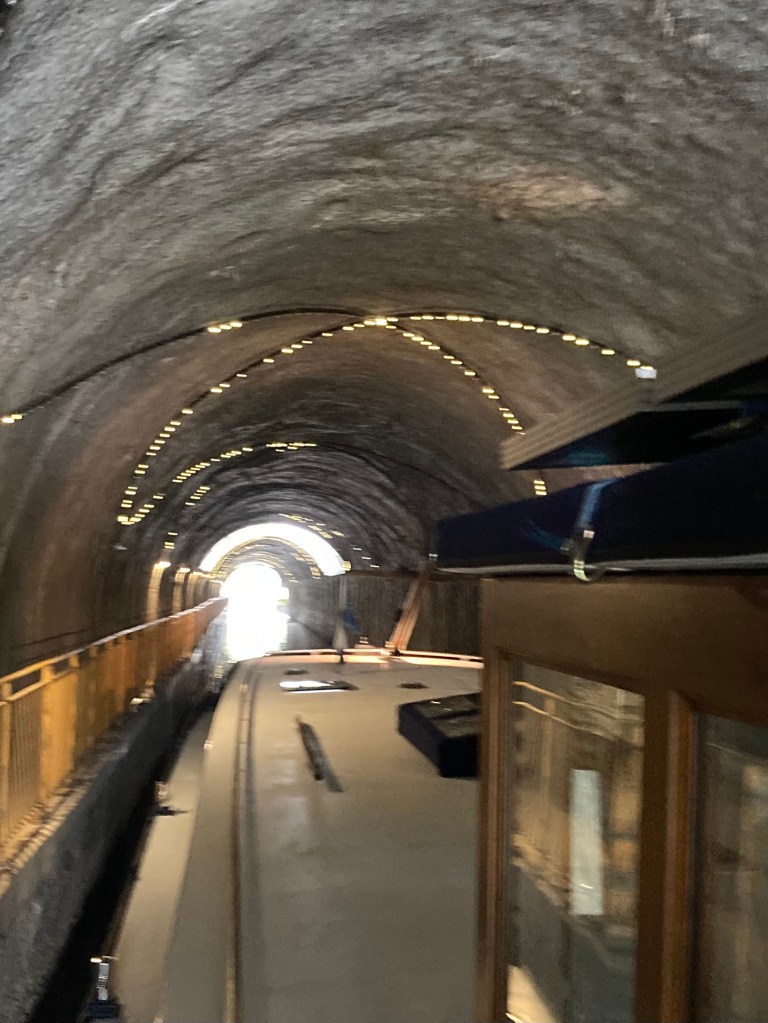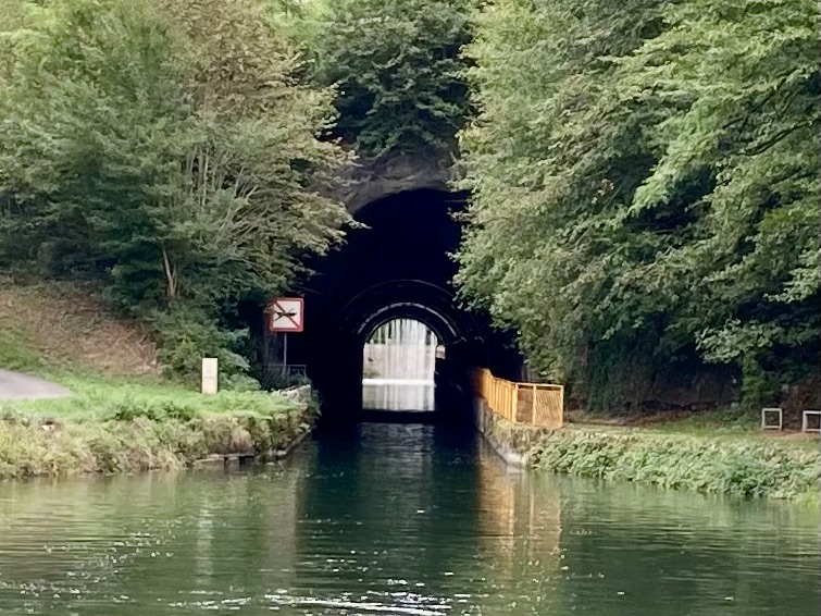 One little diversion was going through a second tunnel – this time the Souterrain de Thoraise. It has been made interesting by a Danish artist who has had some LED light strings installed through the tunnel roof, and a watershed at the Eastern entrance that stops before you enter, then re-starts behind you. There are some chrome tube sculptures at the western end.