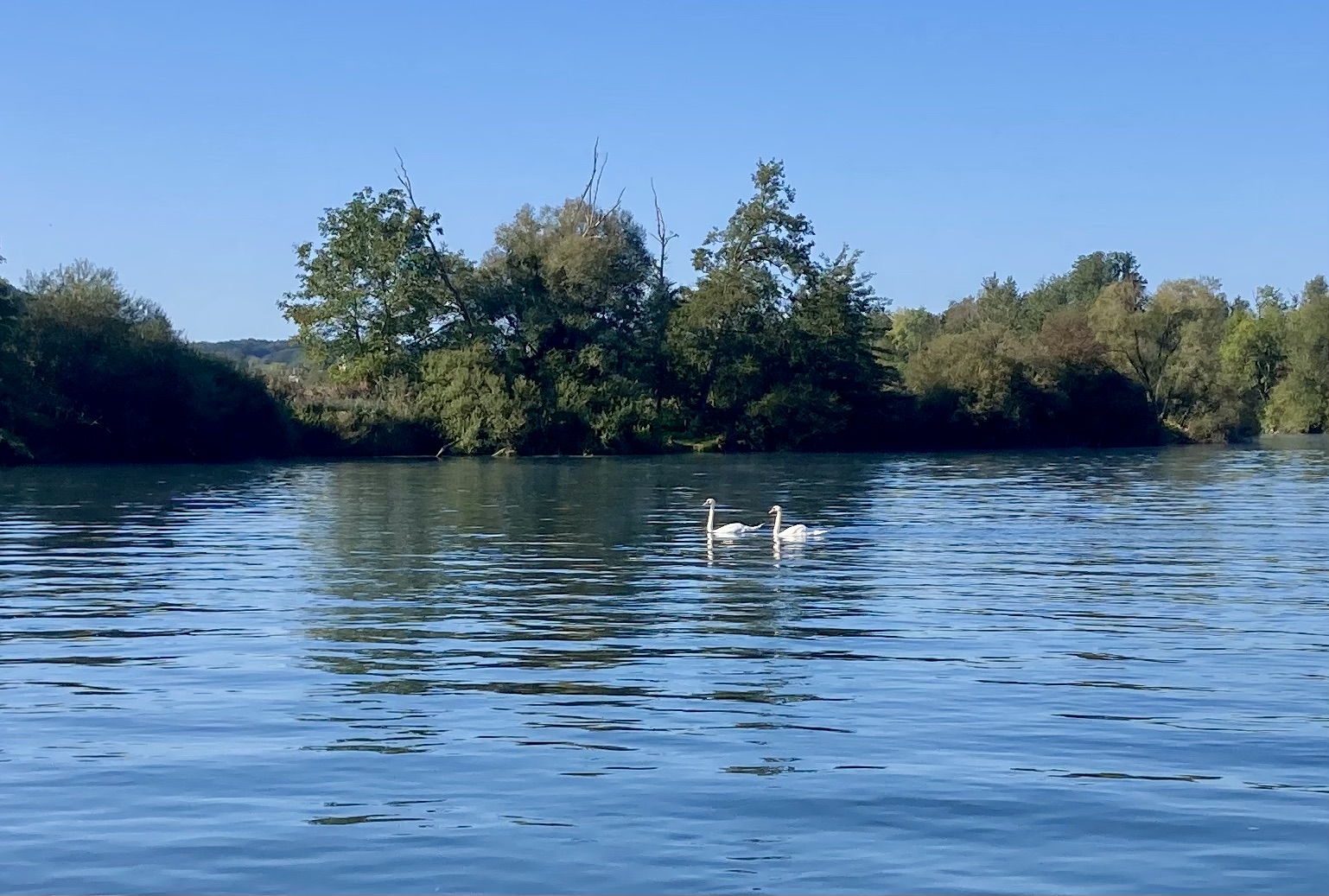 We had set ourselves a 28km target cruise for the day. It was easy to achieve in such lovely weather and along an extraordinarily beautiful stretch of the Doubs. It was no wonder fishermen and swans were out there sharing it with us!