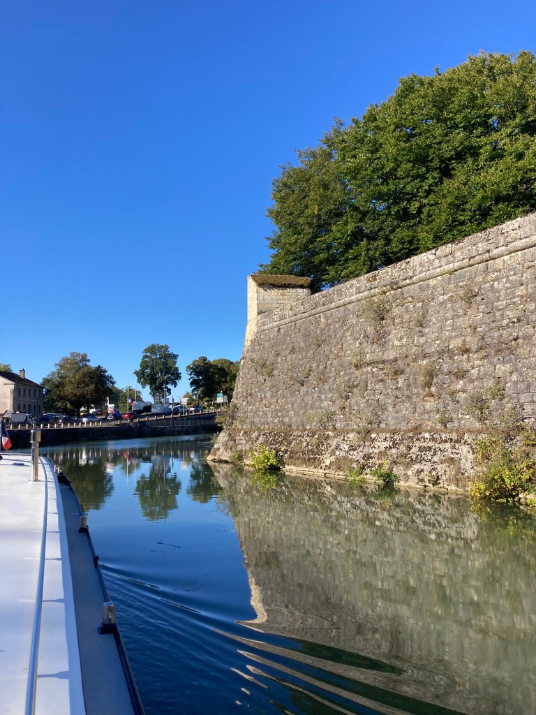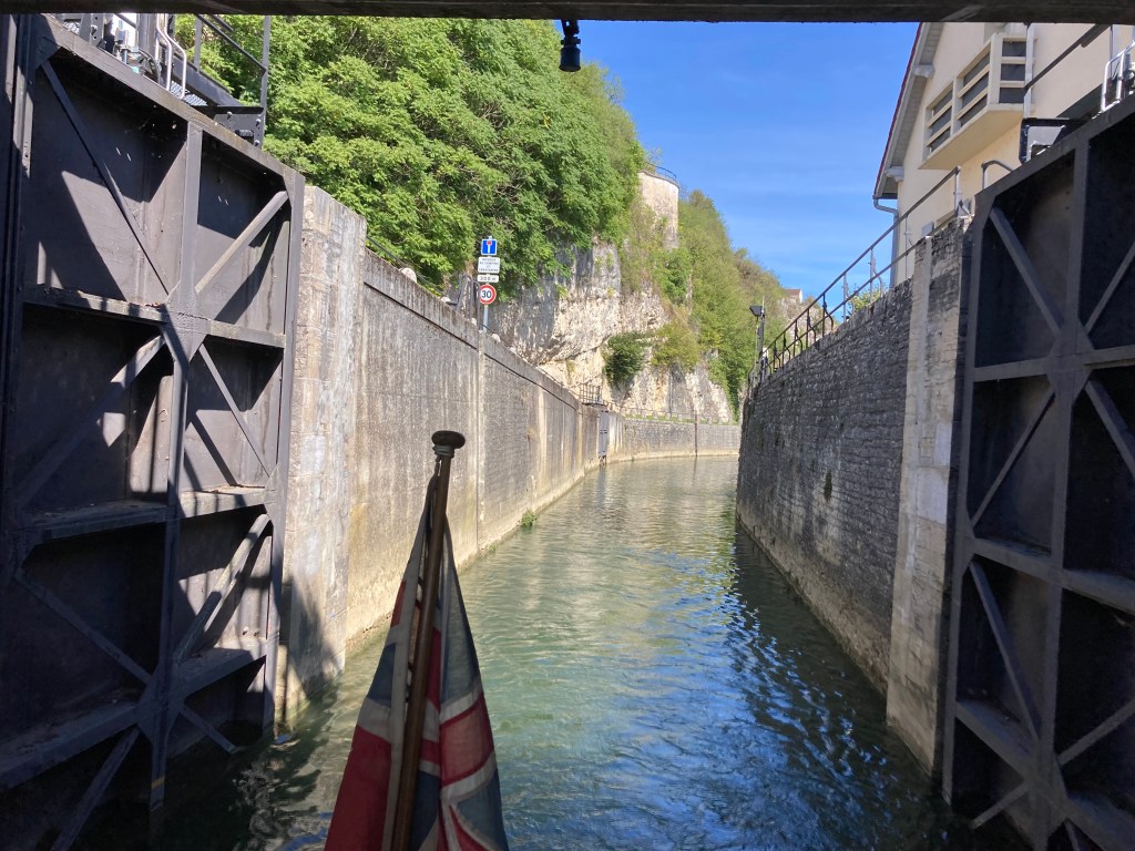 So a quick re-plan was required and I booked us into the port – back the other end of the tunnel. This meant that instead of another tunnel trip we could go round the Besançon river loop and see the city. With that positive news in mind we put lunch out of our minds for a while and enjoyed the view of city walls.