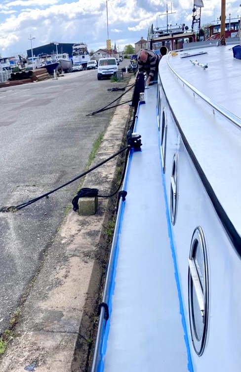 Stewart fixed up the hose and I brushed and washed the cabin roof ready for him to paint. (I am not to be trusted with a paint brush!) I had the easier job by far!
