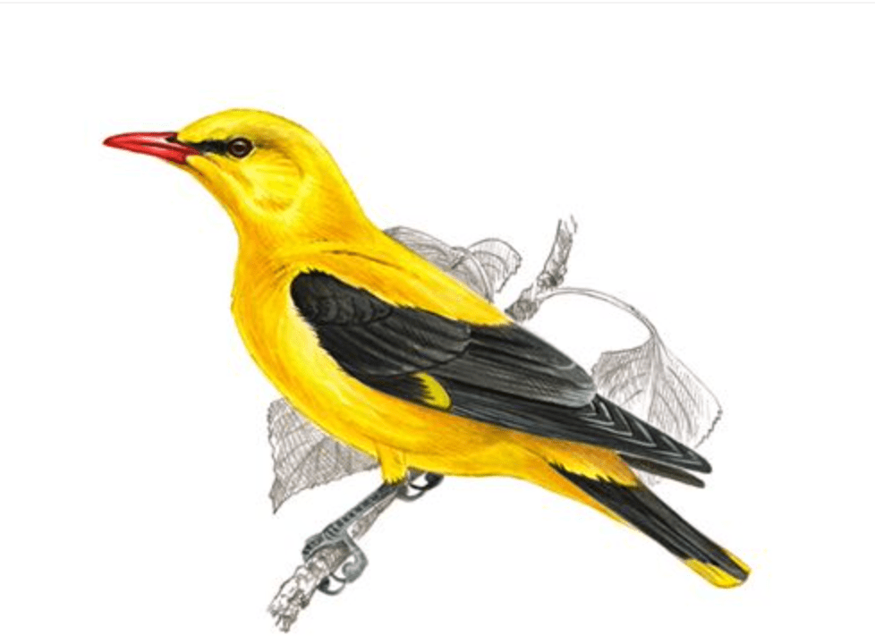 Both birds are notoriously hard to spot, so no actual photos, but here is an internet image of the golden oriole.
