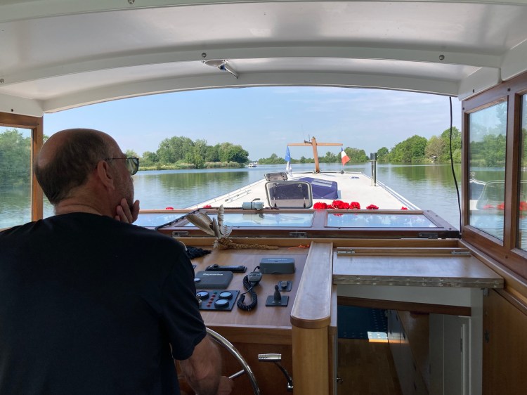 We were off! Calliope was heading down river to a village called Seurre. It was another beautiful day, edging into the high twenties with cloudless skies and a pleasant breeze keeping the wheelhouse cool.