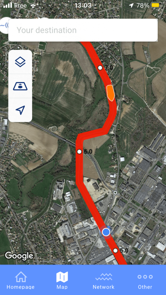 Ahead of us were a couple of good right-hand bends and so we used the VNF app (Navi) to show us the progress of the hotel barge so that we could move very slowly and wait to pass it in a straight stretch.