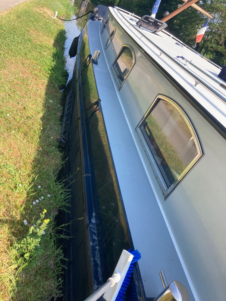 My broken ankle had stopped me from doing anythjing much to the boat for some weeks, but I felt up to some gentle brushing away of muddy marks.