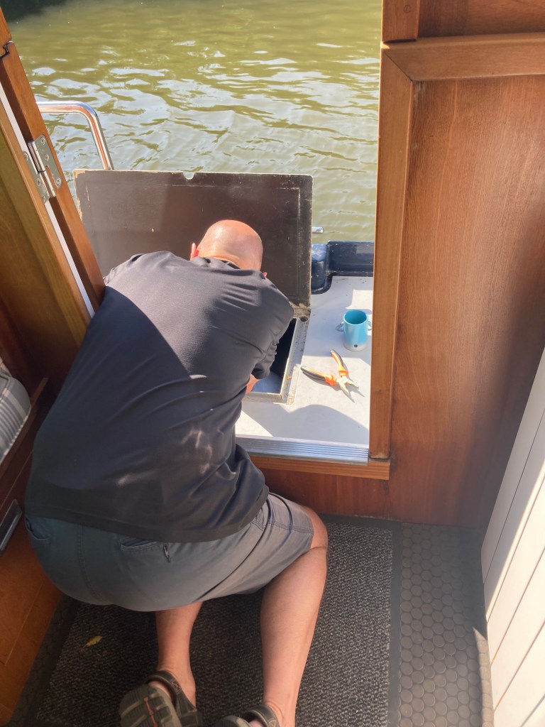 Crew took the wheel while Captain became gas engineer for a few minutes.