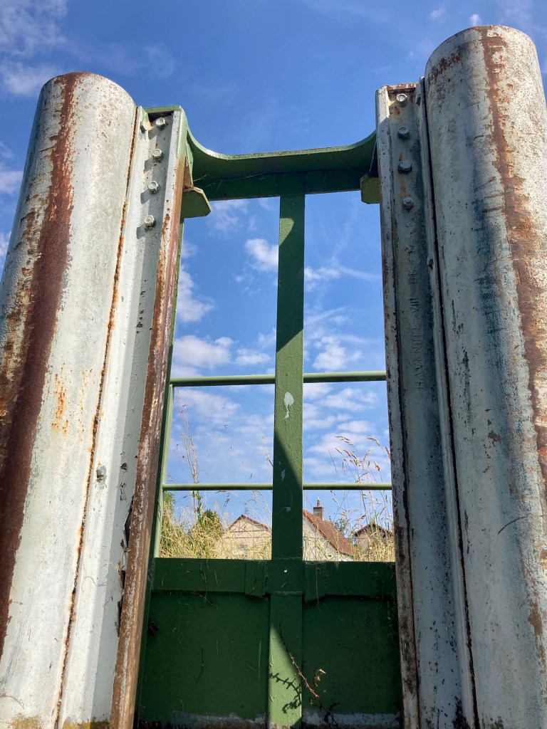 The lock was ready for us; Stu took Calliope in gently and we soon had ropes round bollards. The sign says ’Start’, so we pull the rope; nothing happens. So my ankle is taken up the rusty ladder to find the number and make a call to the VNF. 😁