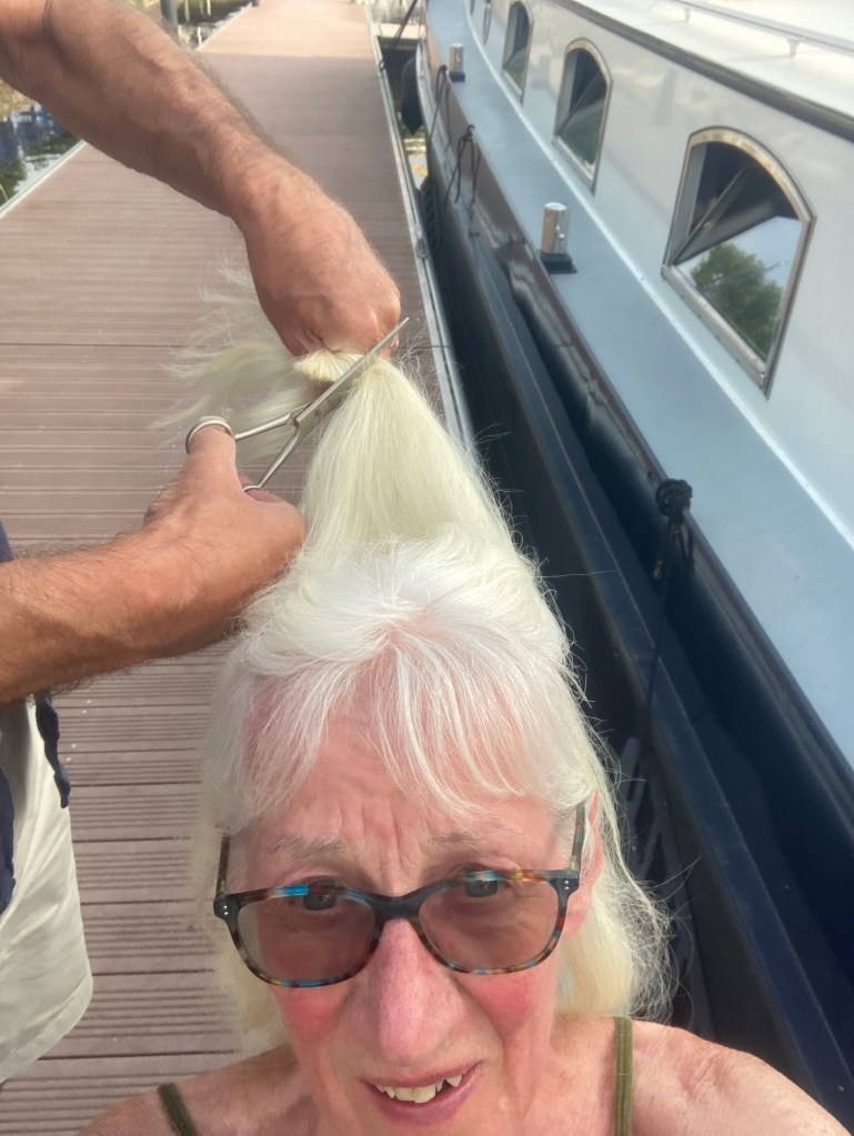 It was a bit of a thing because I had been growing it for 9 years ever since I stopped work. In my mind I was now a Granny, and Grannies have long white hair. Also I was on a boat and sailors have long pigtails.