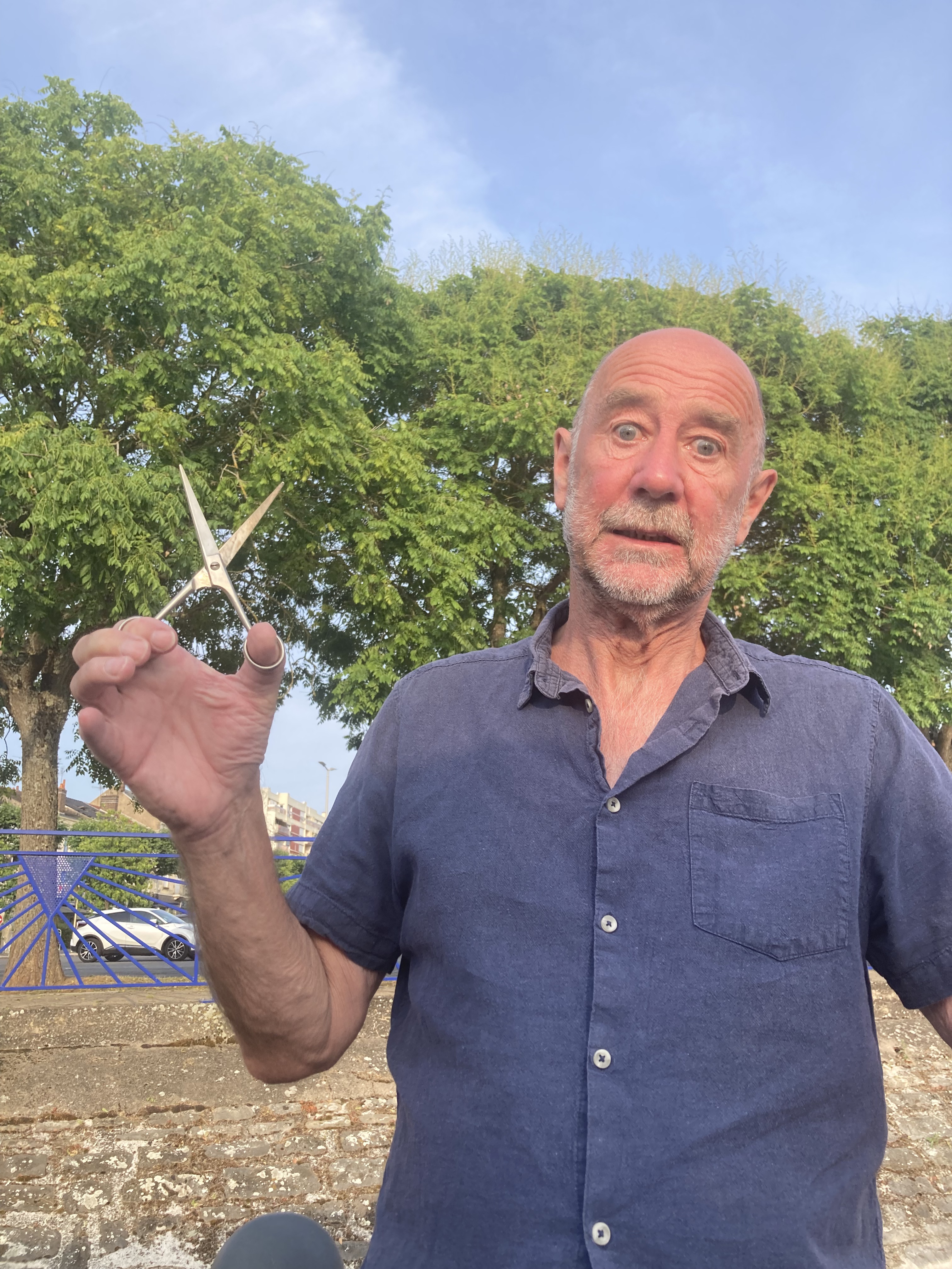 The beer and wine and heat combined might have had something to do with a sudden decision to turn the Captain into a hairdresser and cut off my longish hair.
