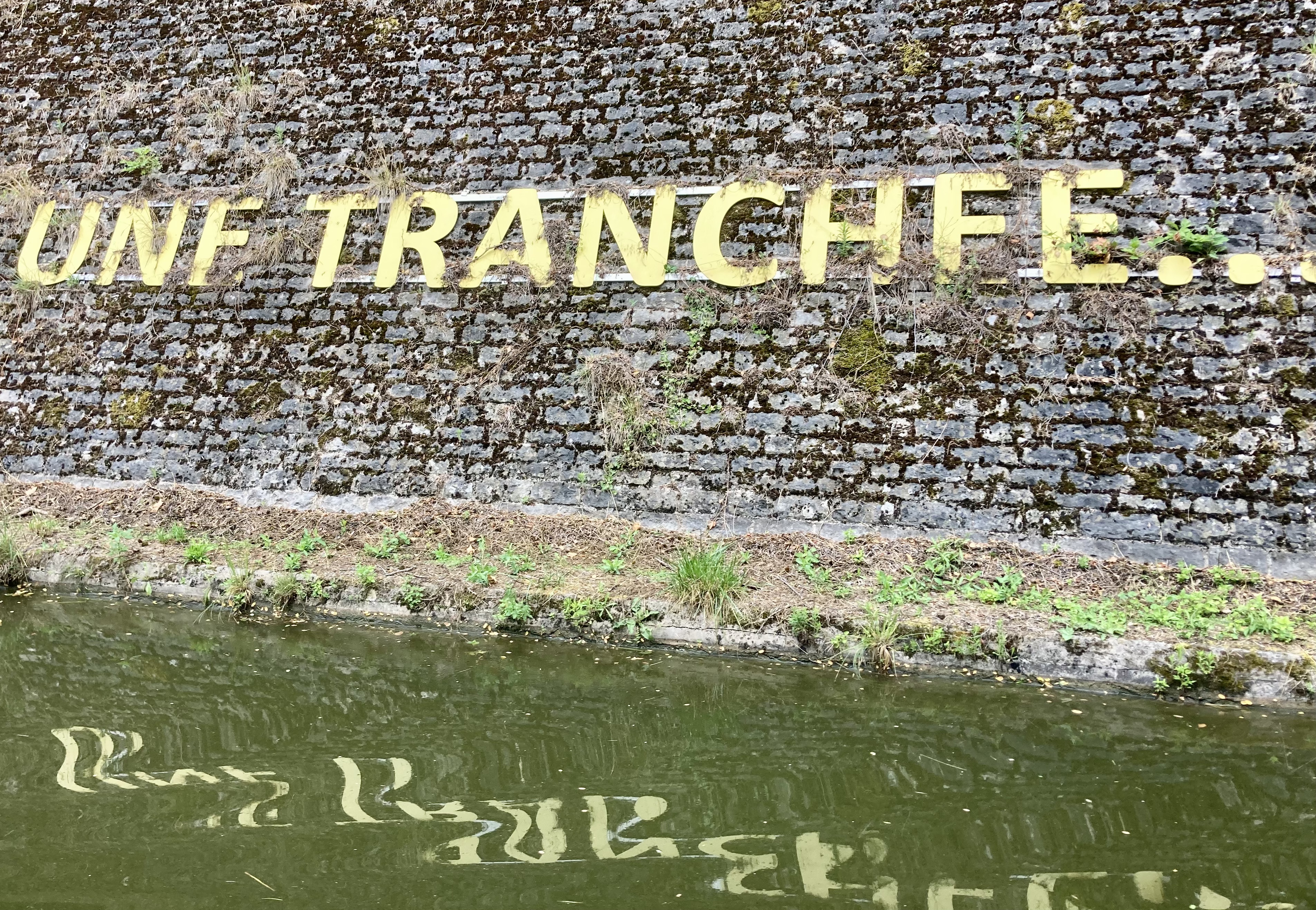 The final beef into Génelard is through a cutting, decorated with reminders of the industry of the area – metal letters and images.