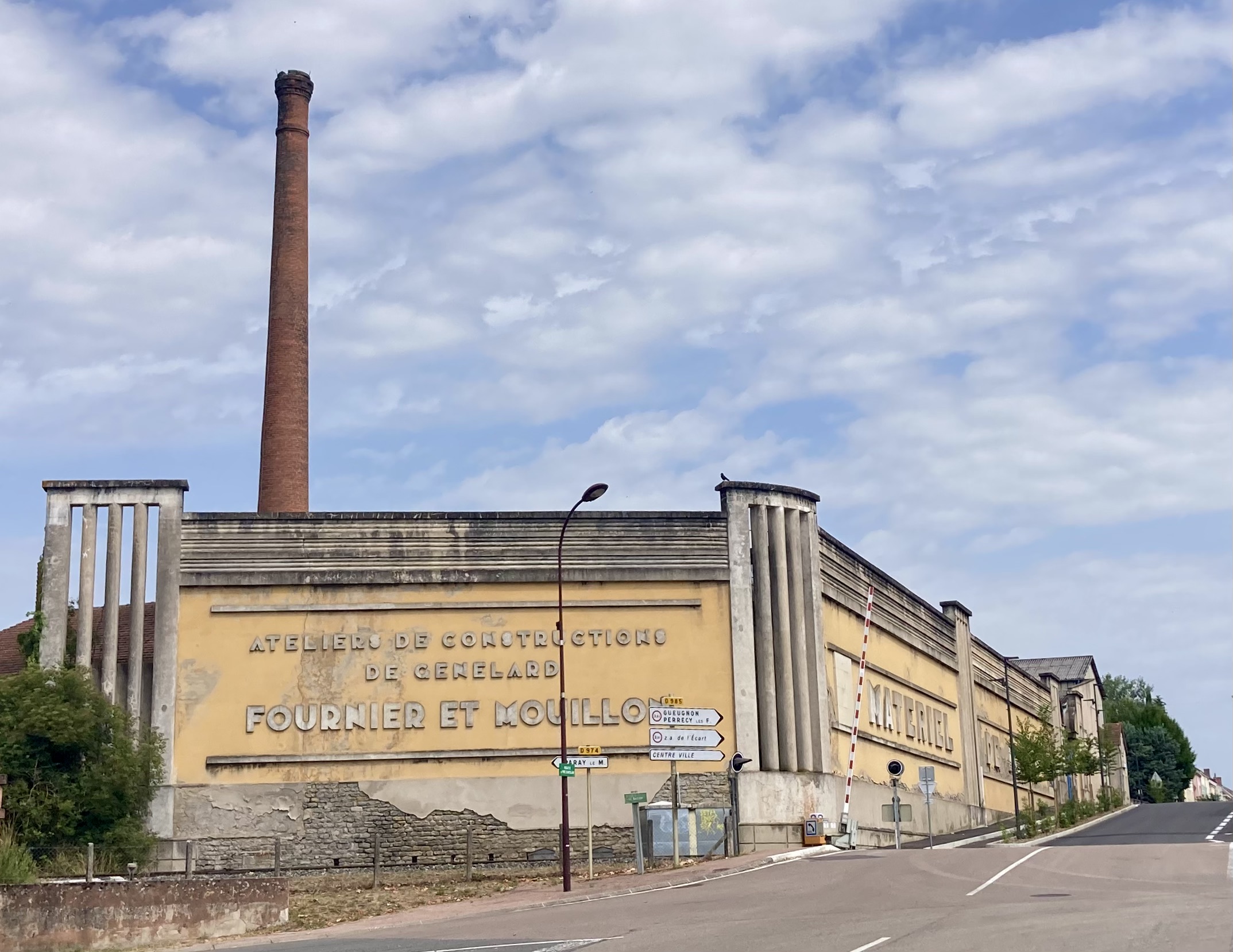 Génelard was a key centre of industry, including a big company called Fournier et Moulillon who made mining equipment that was sold across the world. In the early C20th they ‘hid’ their industrial buildings behind a huge art deco facade.