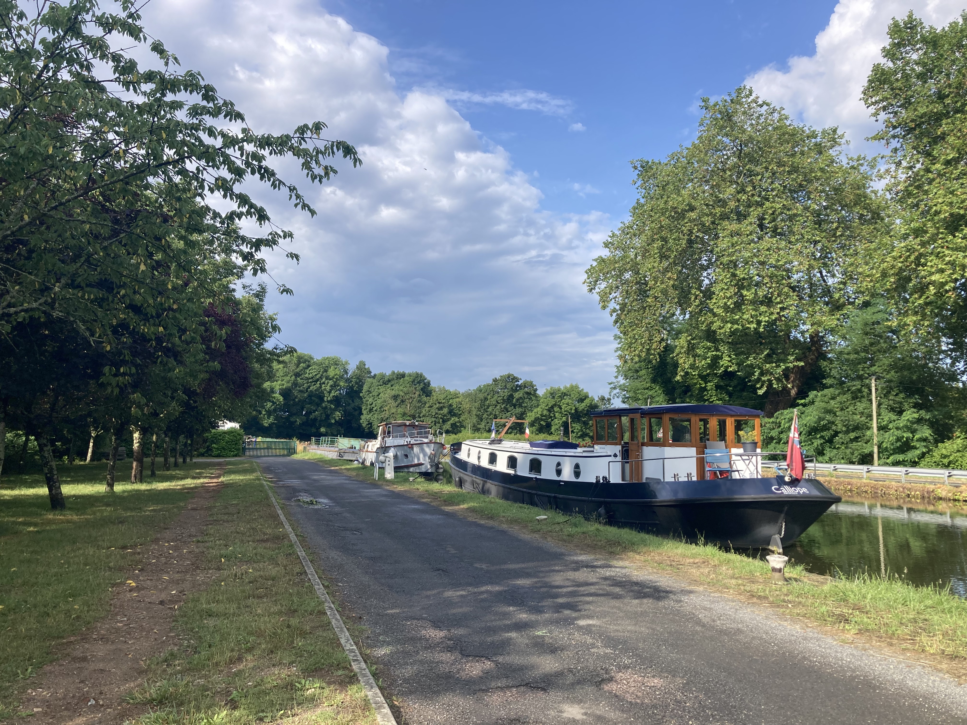 Nonetheless we only stayed the one night, availing ourselves of the Friday market before we left and setting off for the last 100m before the Canal du Centre becomes the Canal Lateral à La Loire, and a new journey begins with an unexpected wait to cross the 240m long Digoin aqueduct.