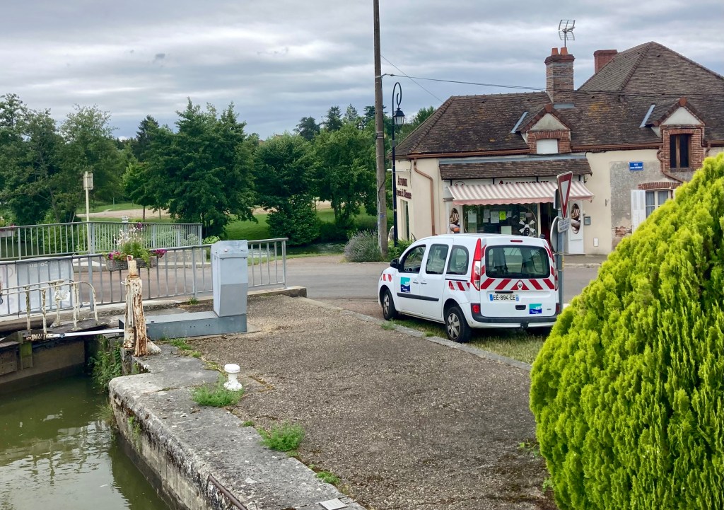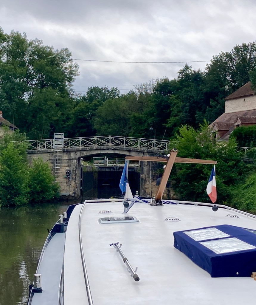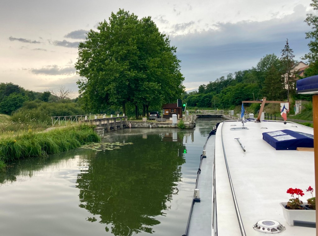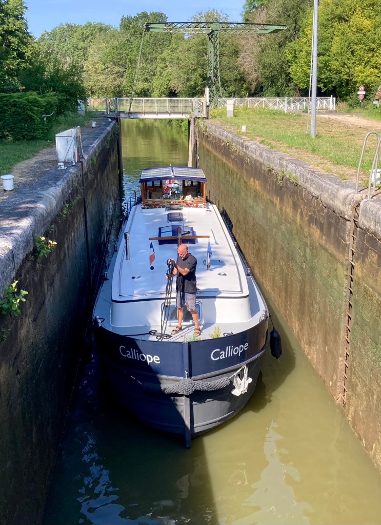 Calliope came up one of the two forks of the Y and had to turn into the other fork – at the same time as entering a lock. A very friendly éclusier (lock keeper) was on hand to help, though Captain Stu brought Calliope in perfectly and it was easy for me to lasso a bollard.