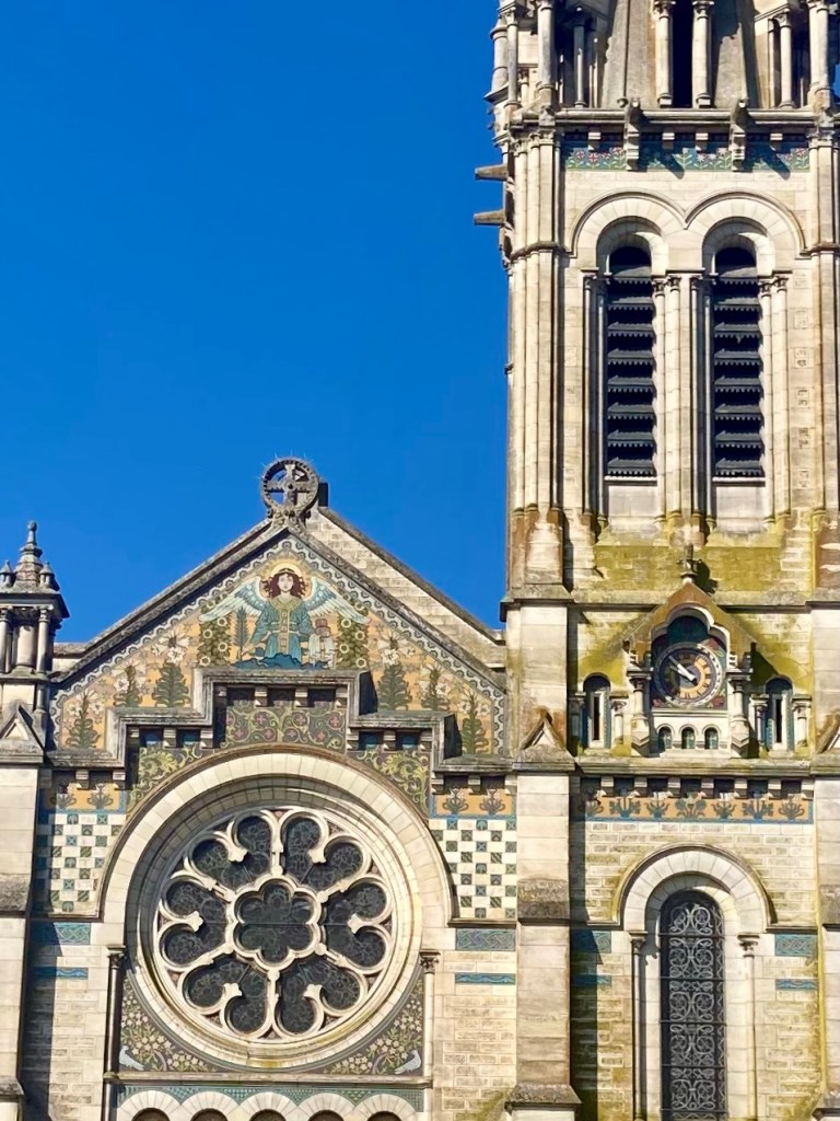 We managed to catch Briare at its quietest, arriving on a Sunday. Our wander round took us past the magnificently landscaped town hall , the church with its colourful mosaics (inside and out), and some other interesting places, but on both Sunday and Monday the town centre seemed so quiet that we thought it was rather a dead town.