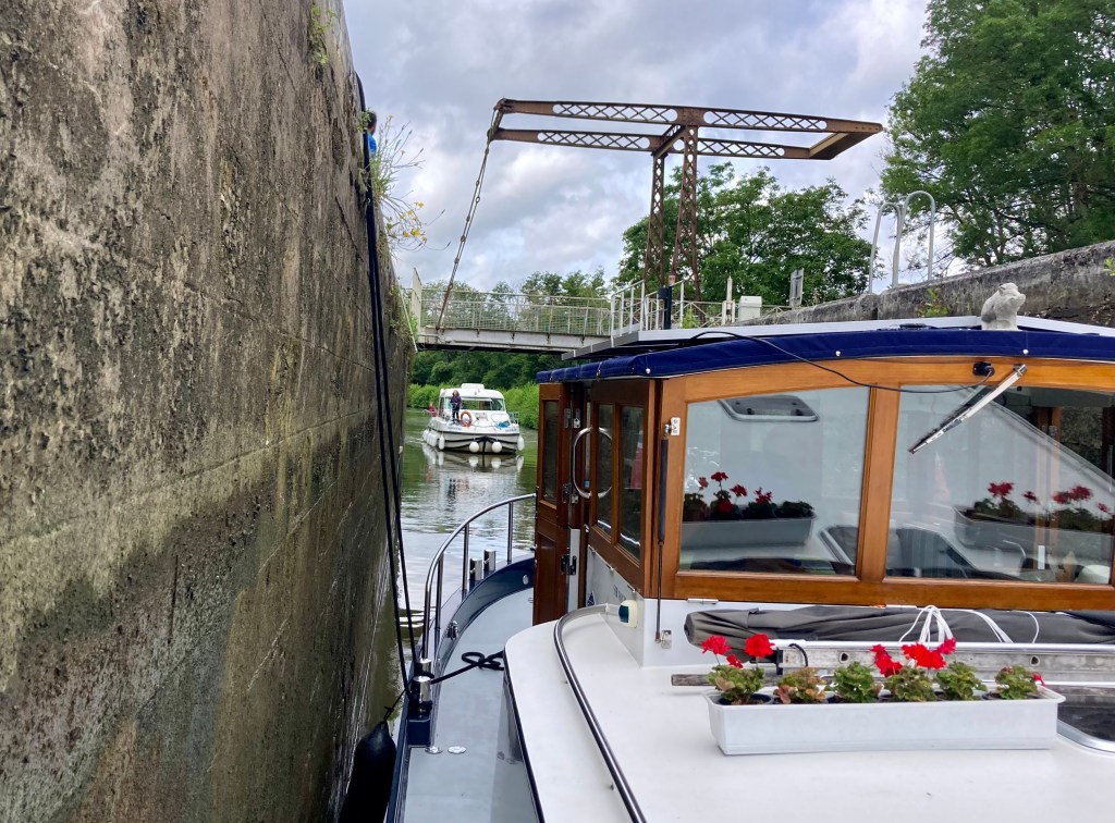 We had been grateful of éclusier help in the deeper locks going up, but we were on our own for the 4m lock leaving Ouzouer.