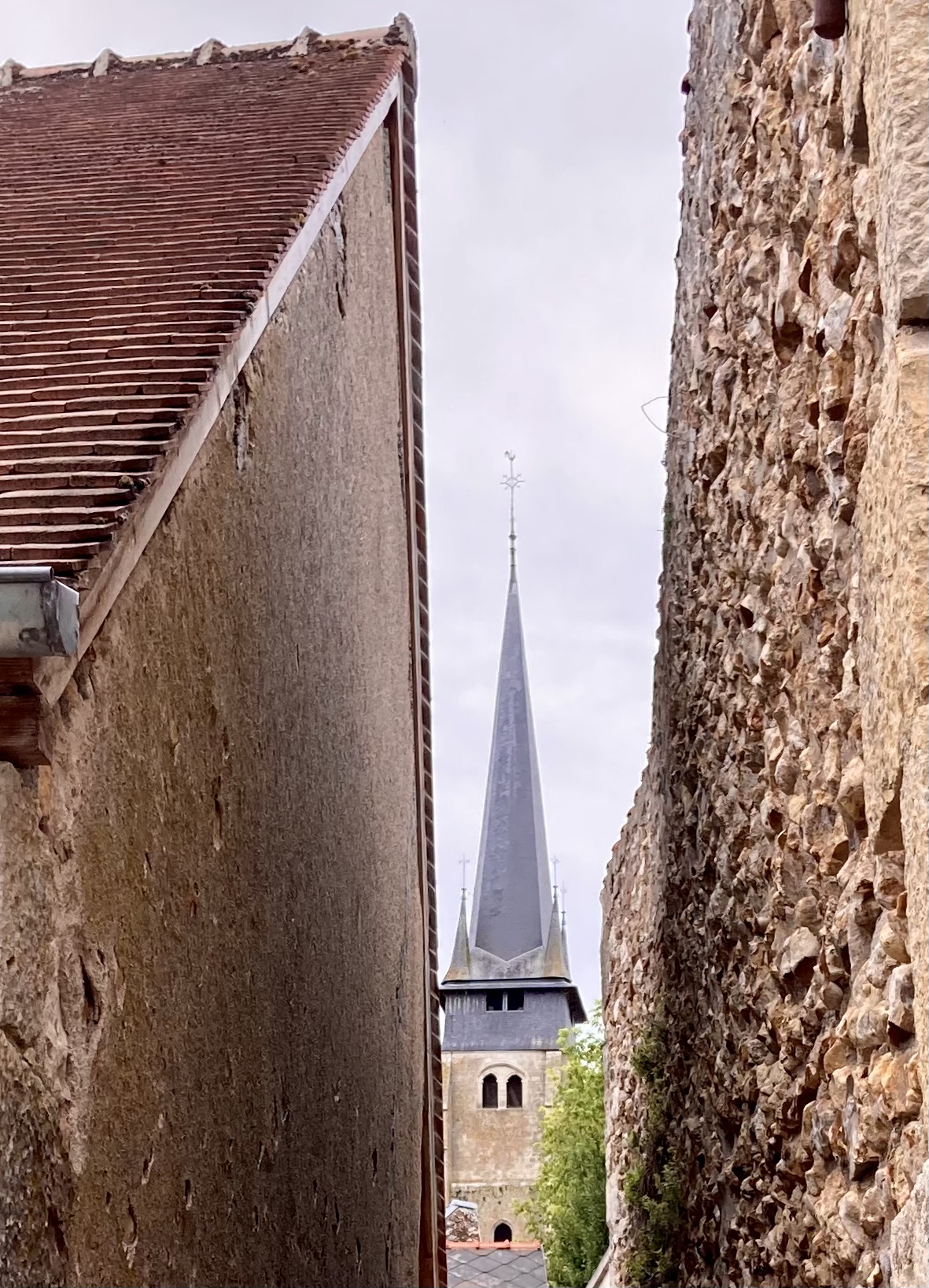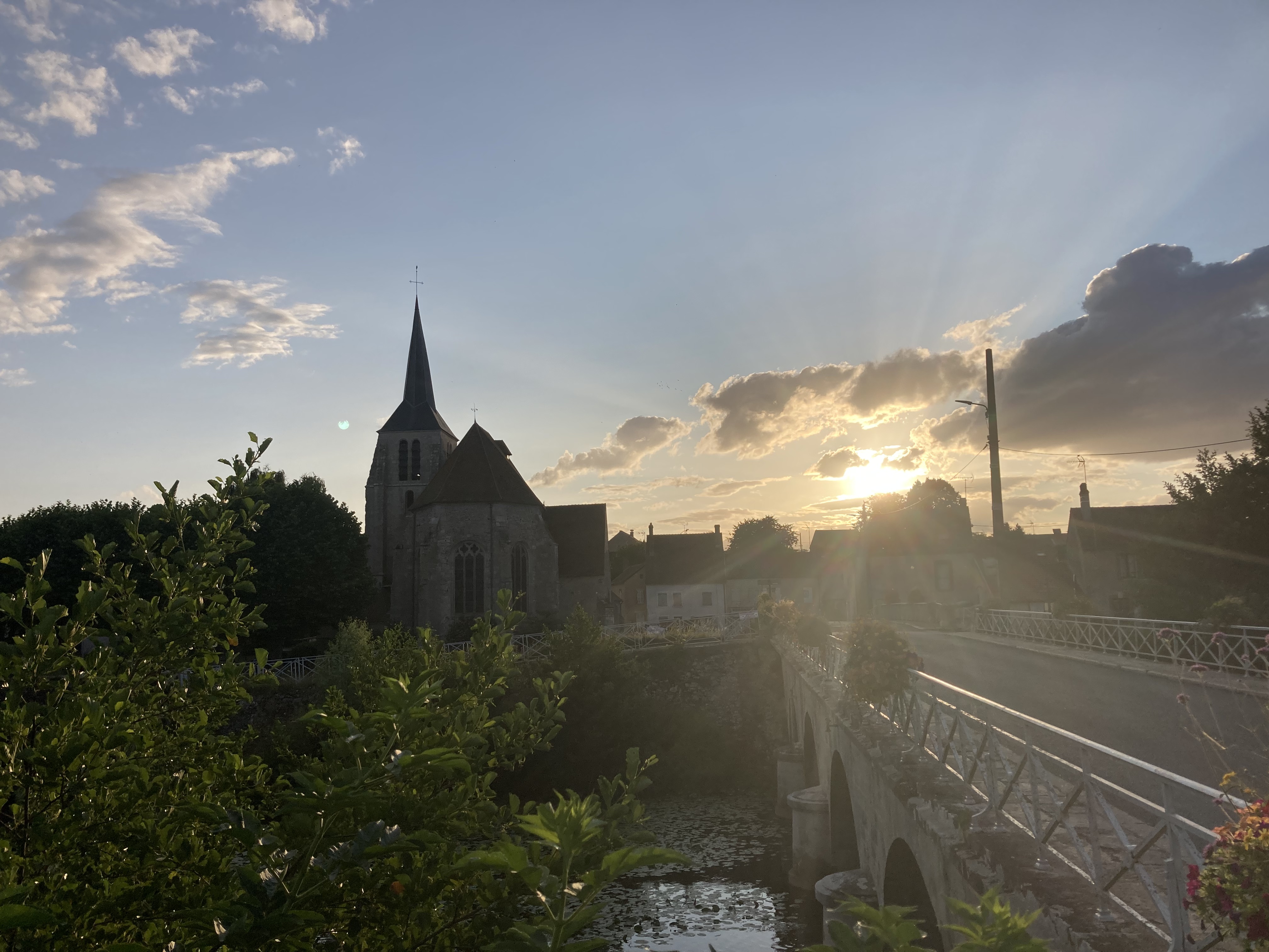 Before saying good-bye to Montbouy my evening wander included two sundown views of the church – one from above and one from the bridge across the river.