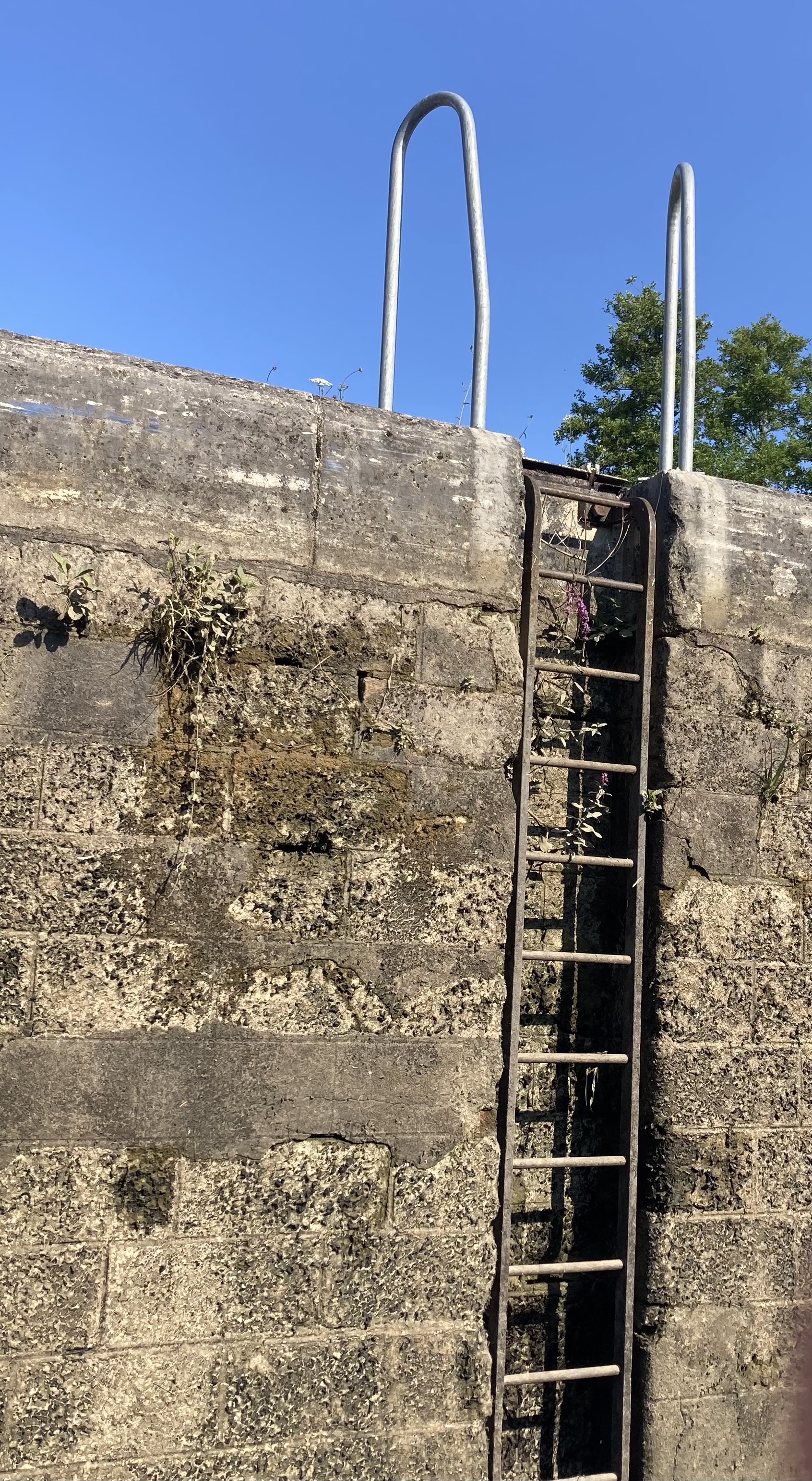 And in a more artistic moment, at the bottom of a lock, I saw this very different type of mooring attachment – a hybrid of a ring and a bollard.